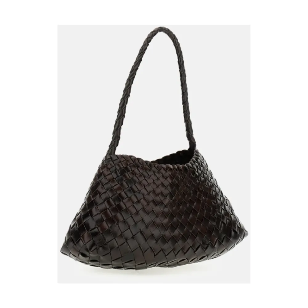 Dragon Diffusion Rosanna er en håndvævet skuldertaske, der kombinerer en diagonalvævet konstruktion i kalvelæder med en afslappet bucket-silhuet til hverdagsbrug. Vigtige egenskaber: Mørkebrun | Kalvelæder | Åben top (ingen lukning) | To tophåndtag | Bucket-silhuet | Håndvævet diagonalt vævning | Sømløs vævet konstruktion | Uforet indre | Dimensioner og pasform: 32X17X10 CM | Sammensætning og pleje: 100% bøffellæder