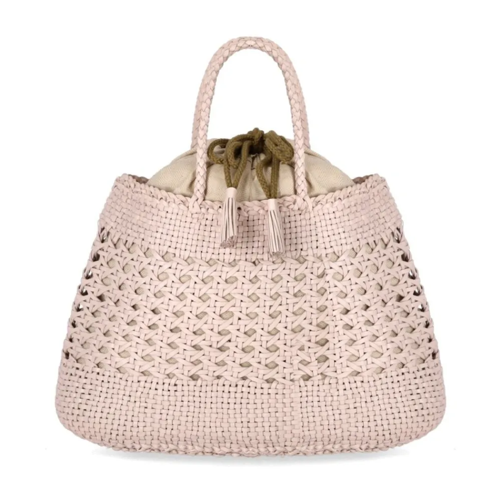 Dragon Diffusion Santa Cano Håndtaske er en vævet lædertaske designet til hverdagsbrug. Dens snørelukning med kvastdetaljer og dobbelte håndtag giver nem adgang og en raffineret silhuet. Vigtige egenskaber: Blush pink | Læder | Dobbelte håndtag | Snørelukning med kvaster | Indvendig lærredspose | Vævet mønster | Bucket silhuet | Kvastdetaljer | Dimensioner & pasform: 30 x 23 x 11 cm | Sammensætning & pleje: 100% læder