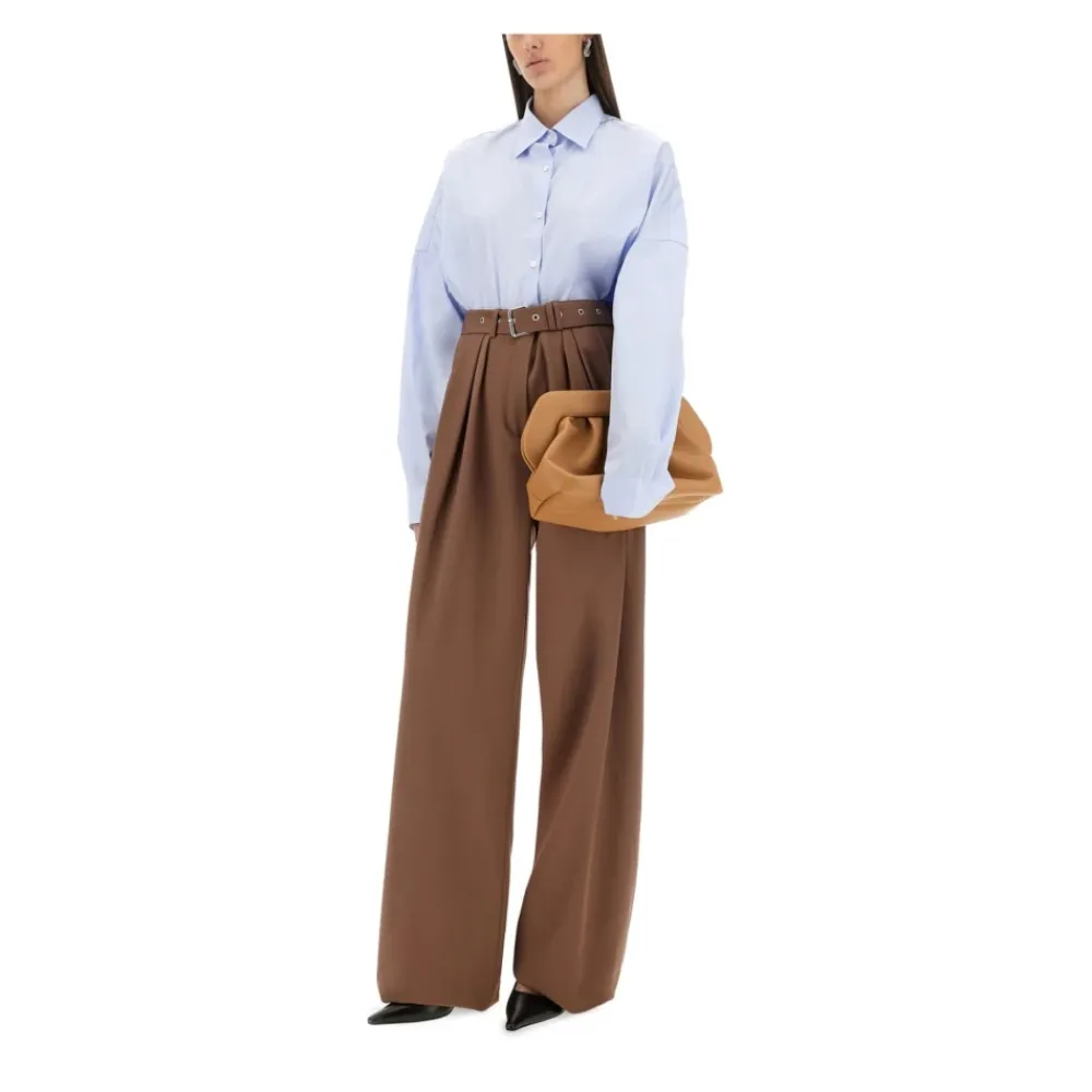 Dries Van Notens højtaljede plisserede bukser med brede ben kombinerer skræddersyede læg med voluminøse ben for at skabe en markant, moderne silhuet, der er velegnet til både elegante dags- og aftenlooks. Nøgleattributter: Brun | Integreret taljebælte | Skræddersyede læg | Voluminøs bredbenet silhuet | Dimensioner og pasform: Højtaljet | Bredt ben | Afslappet pasform