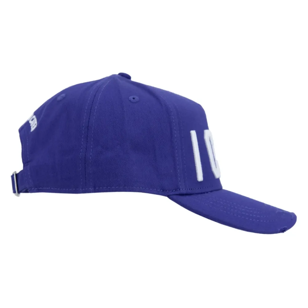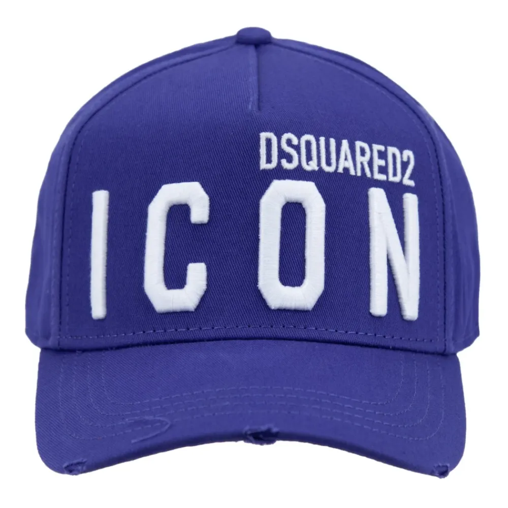 Opgrader dit afslappede look med denne Dsquared2 baseballkasket, der har et markant `ICON`-design og en unik detalje med slidt skygge. Produkt detaljer: Blå | 100% Bomuld | Spænde bagpå | `ICON` og brand-skrift i kontrastfarve | Præget skrift på bagsiden | Dimensioner og pasform: One size fits all | Sammensætning og pleje: 100% Bomuld | Håndvask kun, må ikke tørretumbles.