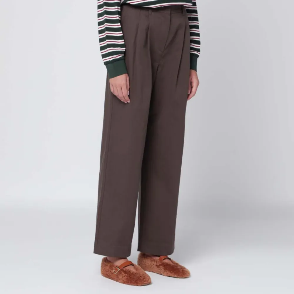 Dunst Double Plisseret Bred Chino Slacks leverer en skræddersyet bredbenet silhuet med distinkte dobbelte frontlæg for et forlængende, poleret look. Designet til alsidig brug, balancerer de formel og afslappet styling med raffinerede detaljer. Nøgleattributter: Brun | Bomuld | Bæltestropper | Frontlæg (dobbelt læg) | Sidelommer | Paspolerede baglommer med knap | Skjult lynlås med hægte og malle | Dobbelte frontlæg (to læg) | Bredt ben med lige silhuet | ‘Dunst Studio’ broderi på baglomme | Dimensioner & pasform: S — Længde 105 cm, Talje 34.5 cm, Hofte 47 cm, Lår 32.5 cm, Bundbredde 25 cm, Stigning 31.5 cm | M — Længde 107 cm, Talje 36.5 cm, Hofte 49 cm, Lår 33.5 cm, Bundbredde 26 cm, Stigning 32.5 cm | L — Længde 109 cm, Talje 38.5 cm, Hofte 51 cm, Lår 34.5 cm, Bundbredde 27 cm, Stigning 33.5 cm | Bred pasform | Lige silhuet | Passer normalt i størrelsen | Sammensætning & pleje: Ydre: Bomuld 100% | Kun kemisk rensning.