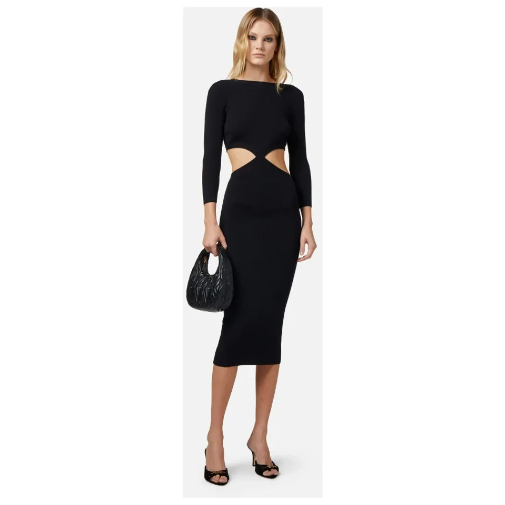 Elisabetta Franchi Kjoler*Ribstrikket Midi Kjole med Udskæring Sort
