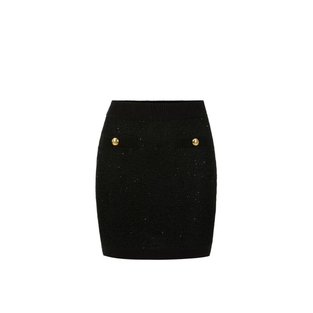 Elisabetta Franchi Nederdele*Strikket nederdel med pailletter Sort