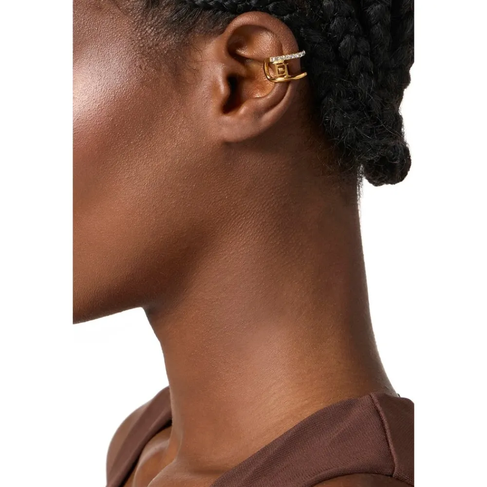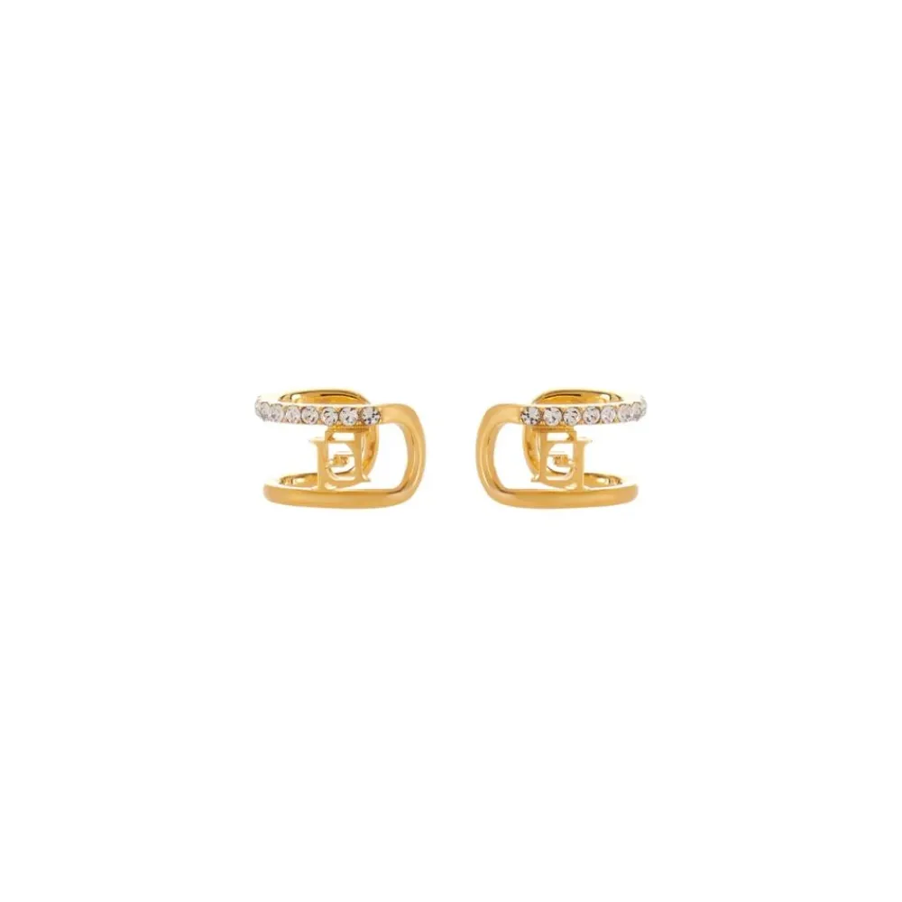 Elisabetta Franchi øreringe med logo og rhinsten er earcuff-øreringe, der kombinerer en gylden finish med funklende rhinstensudsmykning og brandets dobbelte centrale logo. Vigtige egenskaber: Gul | Gult guld | Messing | Earcuff-design | Gylden finish | Rhinstensudsmykning | Dobbelt centralt logo | Dimensioner og pasform: One size | Sammensætning og pleje: 100% messing | Rhinsten