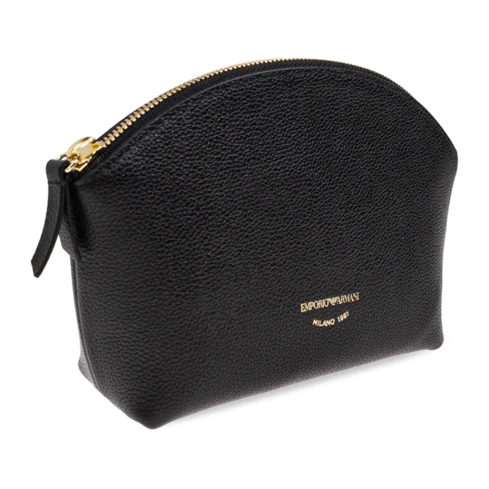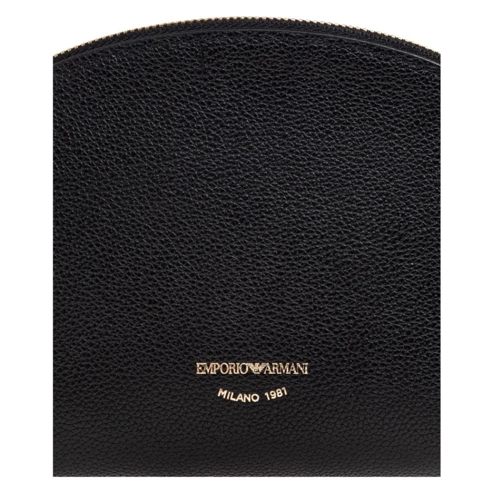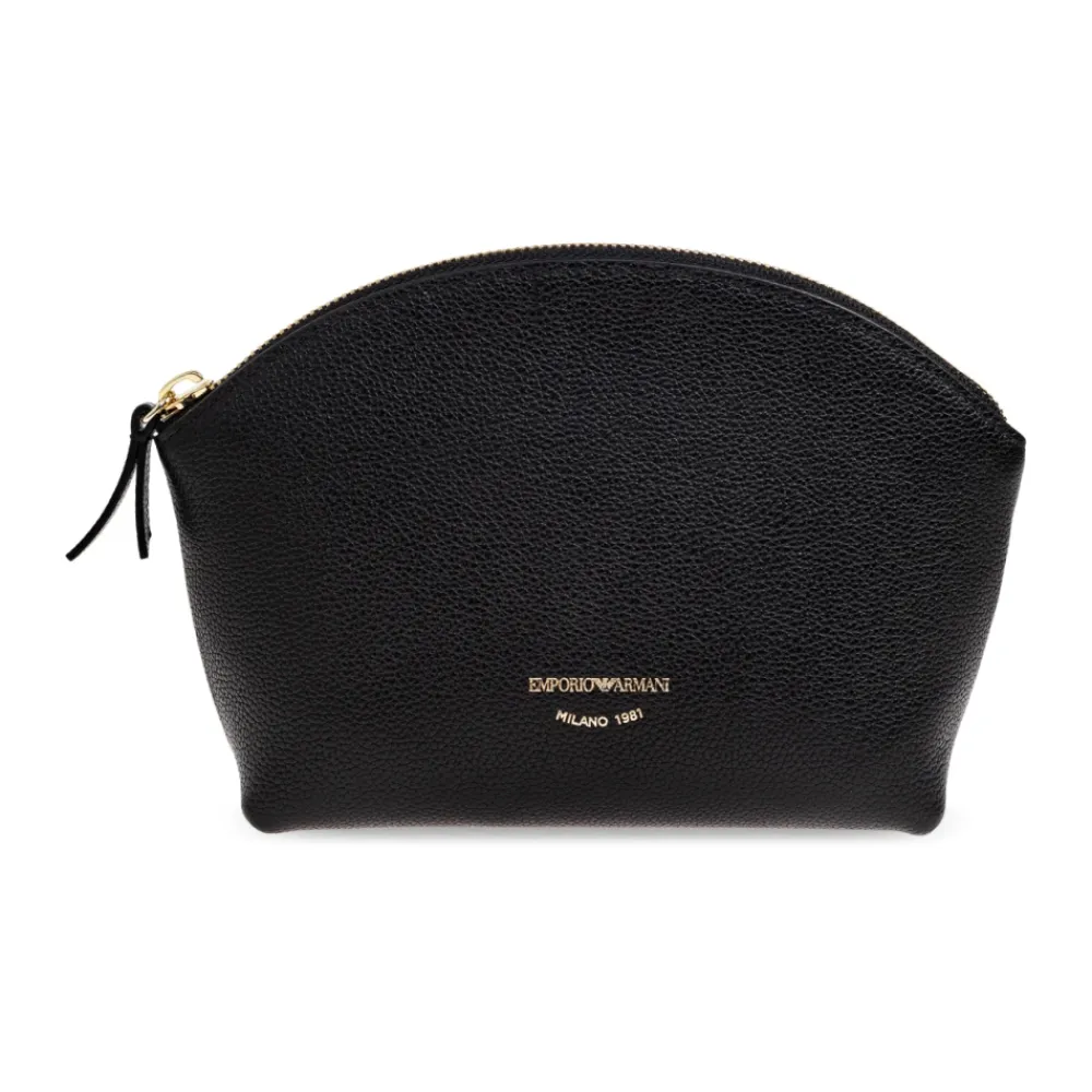 Emporio Armani Læder Toilet Taske kombinerer en raffineret halvcirkelformet, subtilt trapezformet silhuet med sort præget læder for et poleret, praktisk tilbehør. Den er designet til at indeholde grooming- og kosmetikartikler, mens den fremviser guldfarvet hardware og en signaturlogo-detalje. Nøgleattributter: Sort | Læder | Holdbar konstruktion | Ridsfast præget finish | Lynlåslukning med læder-pull tab | Tekstilforet interiør med brandet label | Kompakt, struktureret form til organiseret opbevaring | Halvcirkelformet, subtilt trapezformet form | Kornet præget tekstur | Guldfarvet logo plaque med “EMPORIO ARMANI MILANO 1981” | Guldfarvet lynlås og læder-pull tab | Lyst tekstil interiørforing | Dimensioner & pasform: Højde: 13 cm | Bredde på bredeste punkt: 20 cm | Bundbredde: 5,5 cm | Sammensætning & pleje: Læder | Tekstilforing