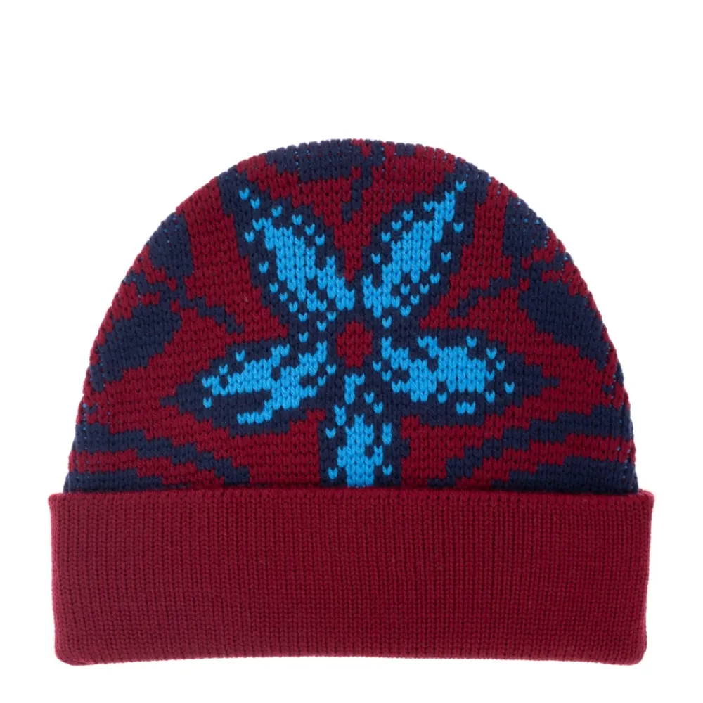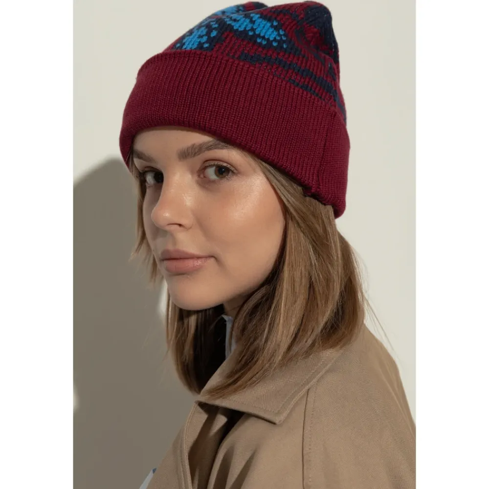 ETRO WOOL BEANIE udstråler raffineret stil og tidløs elegance. Designet har en klassisk, rund hueform suppleret med en bred, opsmøget kant, der giver et poleret, ædelt præg til stykket. Den dominerende accent er et iøjnefaldende blomstermotiv i blå nuancer, der står smukt frem mod baggrunden af burgunder og marineblå. Det symmetriske mønster er en subtil hilsen til orientalske inspirationskilder og den unikke arv fra ETRO-mærket. Premiumkvalitet, tætvævet uld og den subtilt definerede strikkede struktur afspejler en enestående håndværksmæssig kunnen. Fraværet af synlige logoer fremhæver dets minimalistiske appel og lader det tidløse mønsters elegance skinne igennem. HVORFOR SKAL DU VÆLGE DETTE PRODUKT? * Enestående kvalitet af uld og mesterlig udførelse * Distinkt, iøjnefaldende blomstermotiv * Luksuriøst men underspillet design uden synlig branding * Unik karakter inspireret af traditionen fra modehuset Etro