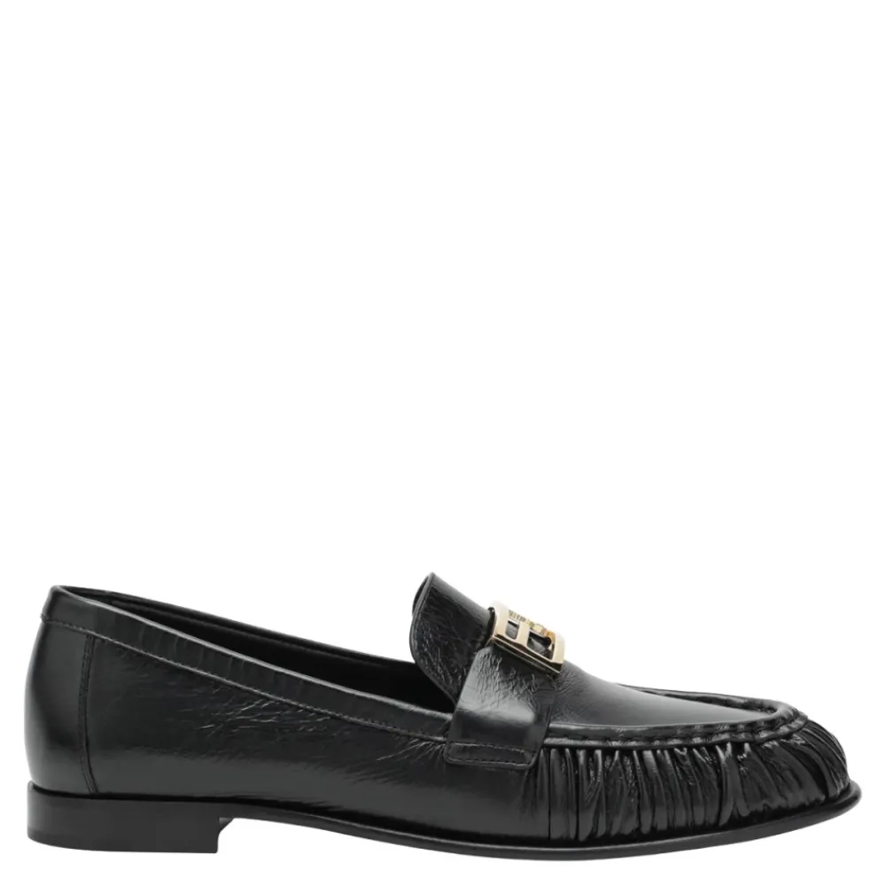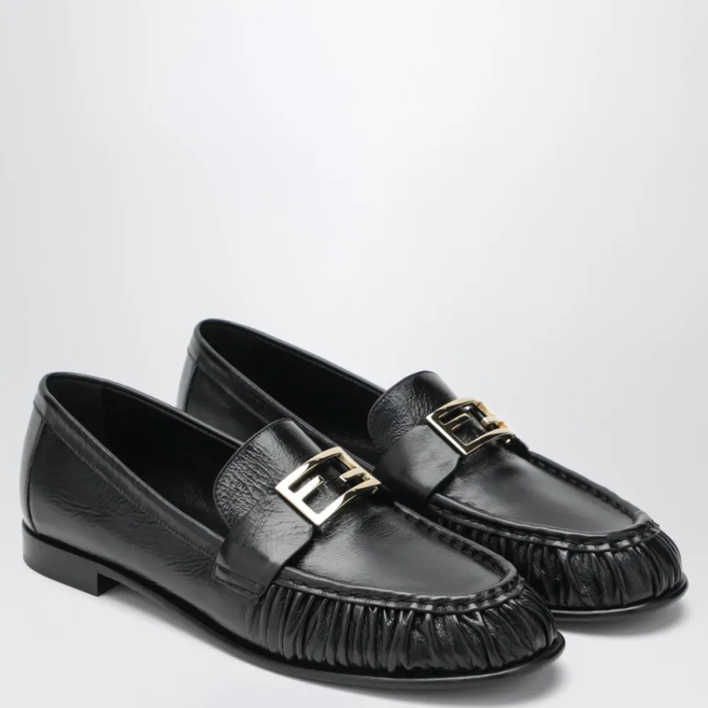 Fendi Baguette loafers fremstillet i sort nappa læder, med den ikoniske FF Baguette-accessory på vristen. Designet til et poleret hverdagslook med en fleksibel, hudlignende konstruktion for komfort. Vigtige egenskaber: Sort | Nappa læder | Skridsikker sål | Lædersål med skridsikker gummiindsats | Rund tå | FF Baguette-accessory på vristen | Rynket forklæde | Fleksibel wrap-around konstruktion | Sammensætning & pleje: 100% lammeskind (overdel) | 100% lammeskind (foring)