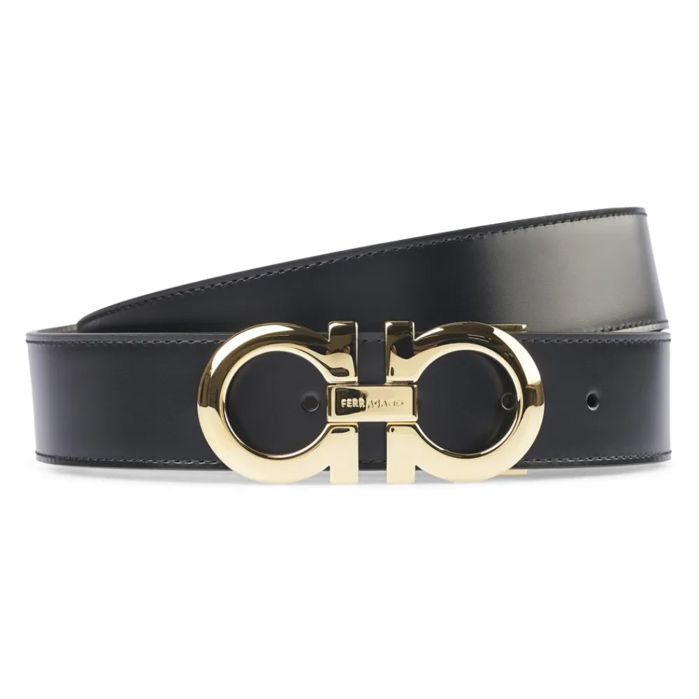 Ferragamo Reversibelt Bælte kombinerer en læderrem med et signaturlogo-spænde og et reversibelt design for alsidig styling mellem formelle og afslappede looks. Vigtige egenskaber: Sort | Læder | Reversibelt design | Justerbar pasform | Logo-spænde | Guldfarvet hardware | Præget logo indvendigt | Dimensioner og pasform: Justerbar pasform | Sammensætning og pleje: Læder