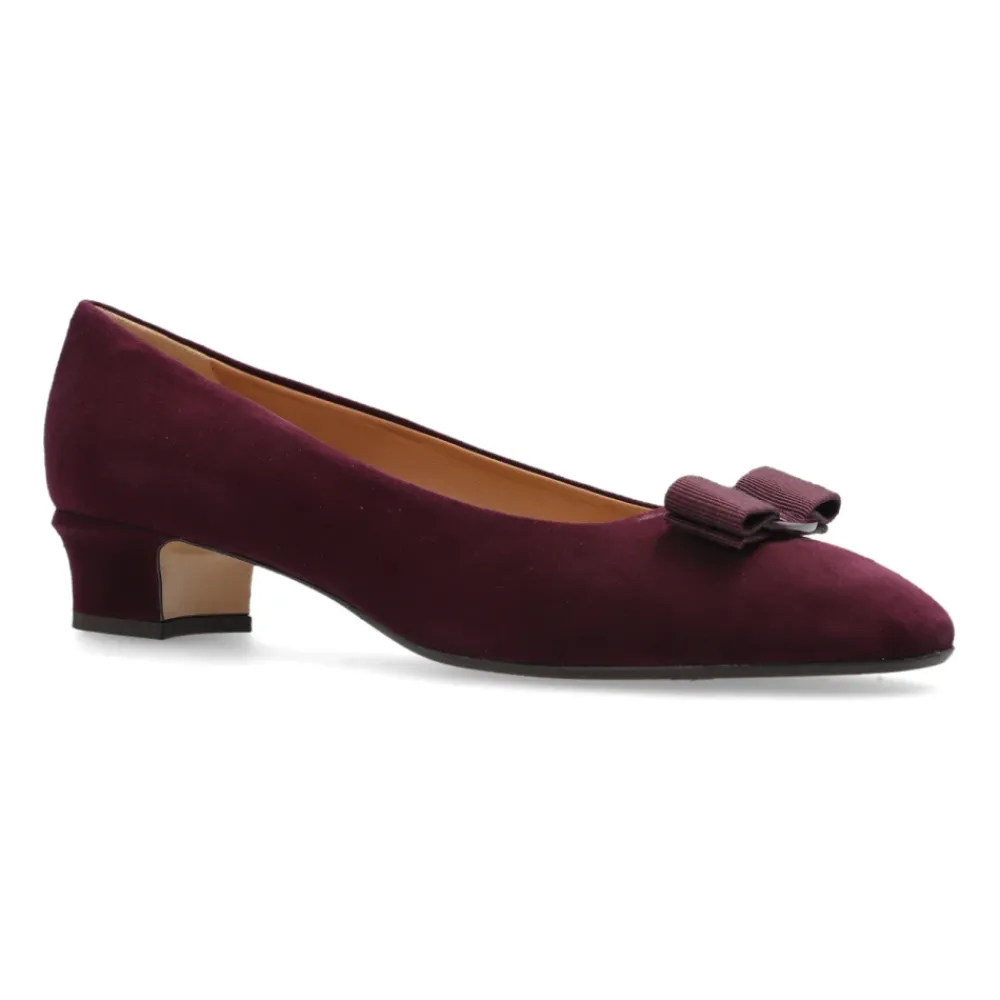 Ferragamo Vara Hælesko kombinerer klassiske pump-proportioner med en ruskindsoverflade og brandets signatur-sløjfe for et raffineret hverdagslook. Vigtige egenskaber: Lilla | Ruskind | Læder interiørforing | Kontureret læder indersål | Stabil medium hæl for komfort hele dagen | Mandelformet tå | Tekstilsløjfe med metalplade | Slank silhuet | Bred, stabil hæl | Dimensioner & pasform: Hælhøjde: 3,5 cm | Sålhøjde: 0,5 cm | Sammensætning & pleje: Ruskind | Læder