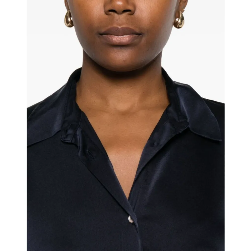Forte Forte Bluser & Skjorter*Navy Blue Silkeblandet Skjorte med Krave Blå