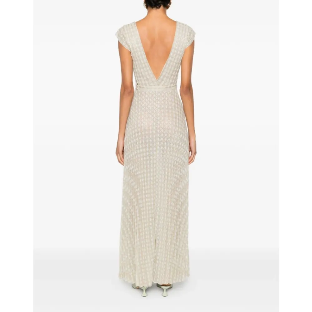 Forte Forte Diamond Plisseret Jersey Kjole kombinerer en dyb V-udskæring med en lang, plisseret silhuet og subtil lurex-glimmer – designet til elegant festtøj og formelle begivenheder. Nøgleattributter: Beige | Ivory | Viskose jersey | V-udskæring | Uden ærmer | Diamantplisseret skørt | Dyb V-udskæring foran og bagpå | Lurex tråddetaljer | Figursyet overdel med blødt udstående skørt | Sammensætning & pleje: 70% viskose | 15% polyester | 15% polyamid | Lurex metallisk tråd