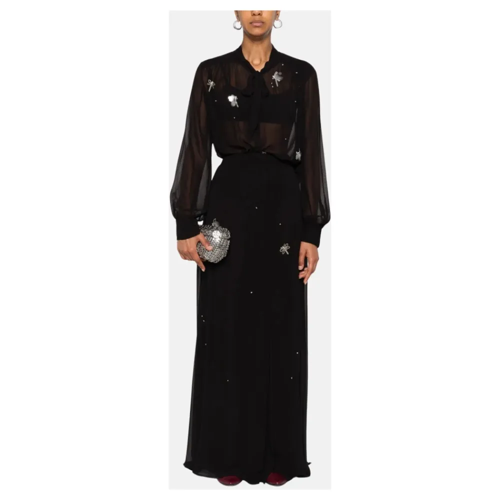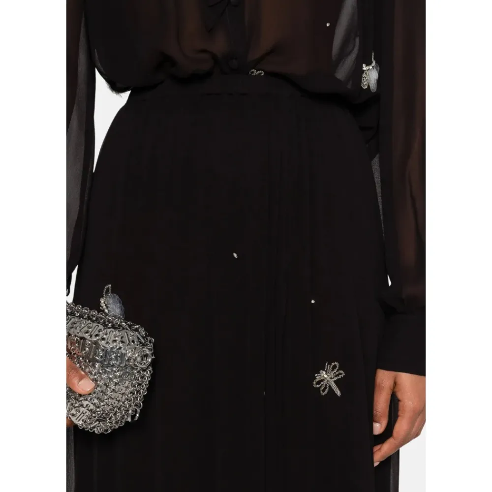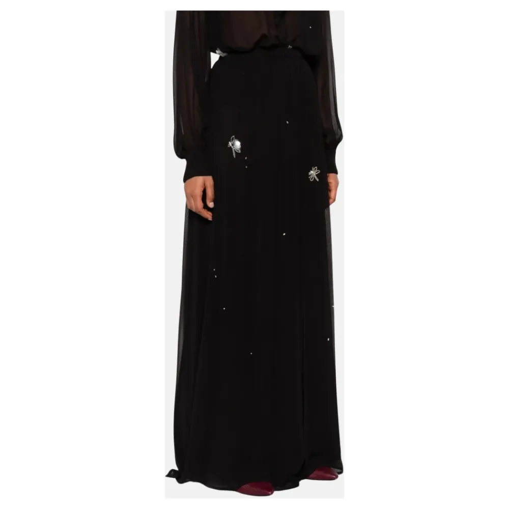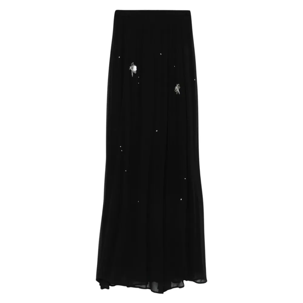 Forte Forte Lang nederdel med elastisk talje er en maxinederdel, der fremhæver brandets signaturbroderi. Den kombinerer let viskosevoile med motivet “carousel des sylphes” for et elegant, flydende look. Vigtigste egenskaber: Sort | Nero | Viskosevoile | Letvægtsstof | Åndbar | Elastisk talje | Maxilængde | “Carousel des Sylphes” broderi | Flydende silhuet | Voile tekstur | Dimensioner & pasform: Flydende silhuet | Elastisk talje for justerbar pasform | Sammensætning & pleje: 100% viskose | Kun kemisk rensning.