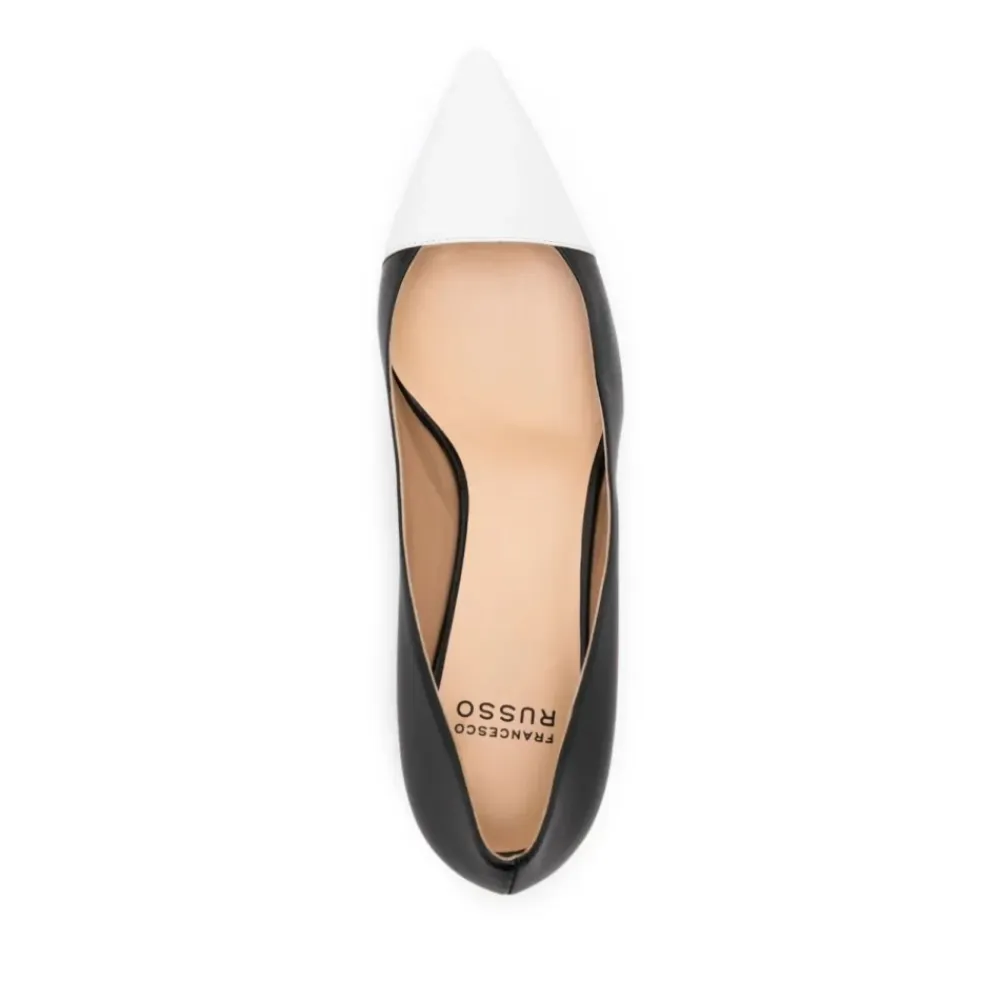 Forkæl dig selv med disse Francesco Russo pumps i hvid og sort. Perfekt til den moderne kvinde.