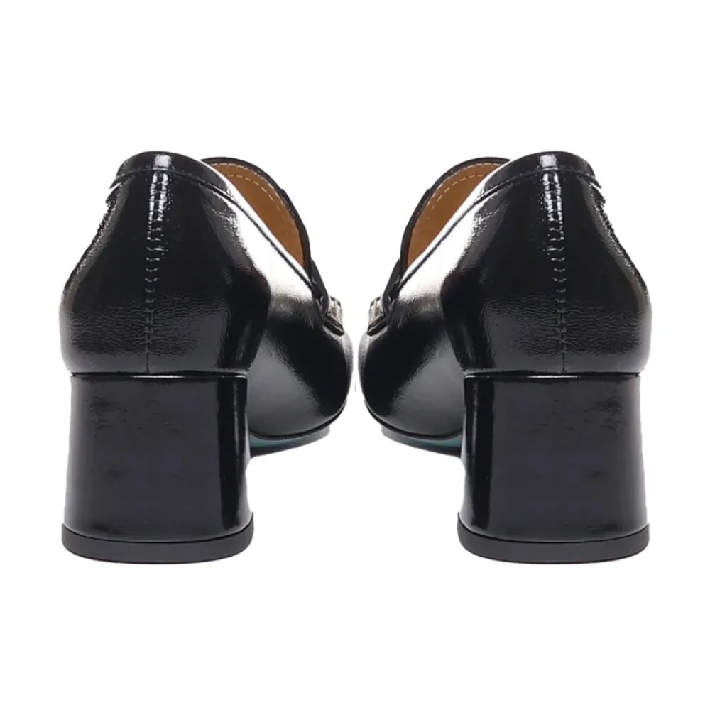 Skab et stilfuldt look med disse FRATELLI RUSSO sorte laklæder mokkasinpumps. Fremstillet i Italien med en dobbelt hæl, er disse sko af 100% kalveskind et must-have for enhver modebevidst kvinde.