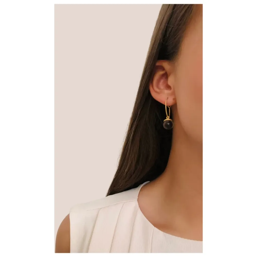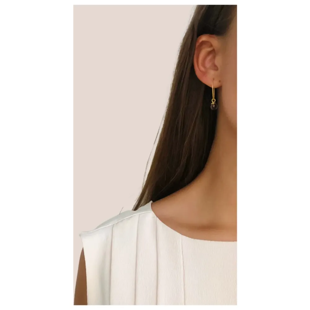 Forkæl dig selv med disse Frk. Lisberg Columbine creol øreringe i 14 karat forgyldt sterlingsølv med en smuk røgkvarts sten. Vælg mellem to størrelser: Lille (ca. 6 mm i diameter) og Mellem (ca. 9 mm i diameter). Prisen er for et par.