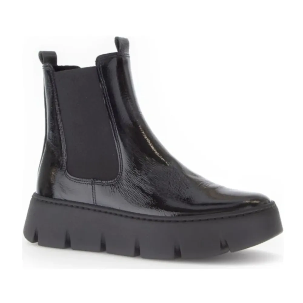 Gabor Chelsea Boot – en ankelstøvle i laklæder designet til hverdagsbrug i byen. Den kombinerer en klassisk Chelsea-silhuet med en udtagelig, polstret indersål for komfortabel brug hele dagen. Vigtige egenskaber: Sort | Laklæder | Polstret, udtagelig indersål | Udtagelig indersål | Chelsea-silhuet | Rund snude | Blok hæl | Dimensioner og pasform: Skaftehøjde: 15 cm | Hælhøjde: 5 cm | Vægt: 0,83 kg | Normal bredde (F) | Sammensætning og pleje: Overdel: Laklæder | Foring: Mikrofiber | Udtagelig indersål
