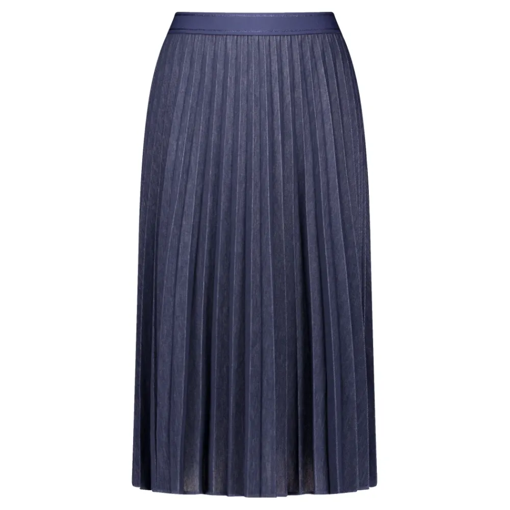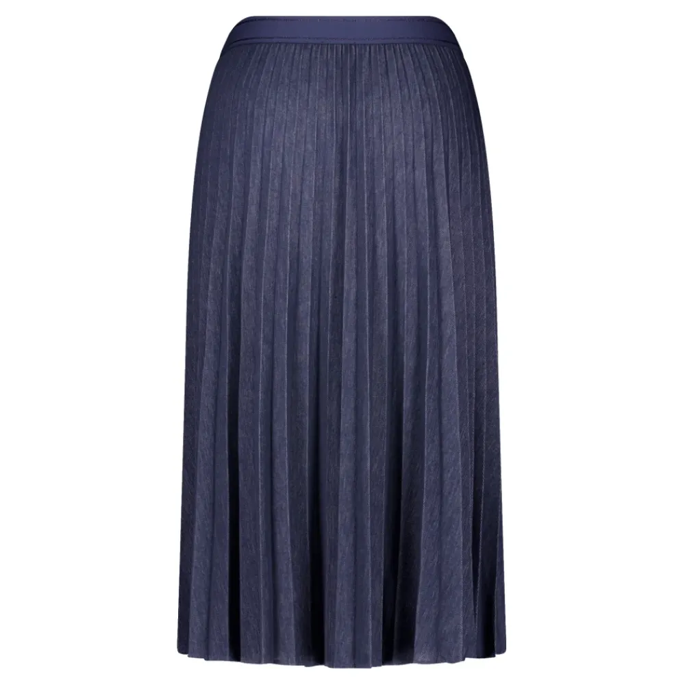 Gerry Weber Skirt Jersey er en plisseret midi-nederdel med en flydende silhuet, der kombinerer komfort og nem styling til hverdagsbrug og mere festlige looks. Vigtige egenskaber: Blå | Mørkeblå denim | Polyester | Strækstof | Komfortabel bevægelse | Nem at style | Plisseret design | Flydende silhuet | Let A-formet silhuet | Midi-længde | Mål og pasform: Almindelig pasform | Materiale og pleje: 95% polyester | 5% elastan | Finvask ved maks. 30°C. Må ikke tørretumbles. Stryges ved maksimal temperatur på 110°C. Rens anbefales.