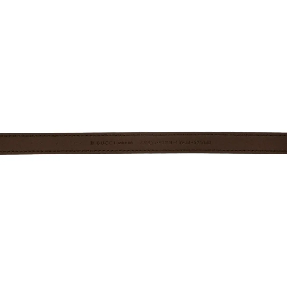 Gucci GG Marmont Bæltet kombinerer brandets ikoniske Double G motiv med læderkonstruktion. Designet til hverdagsbrug og tilføjer et raffineret fokuspunkt til både afslappede og skræddersyede outfits. Vigtigste egenskaber: Multicolor | Marrone | Beige | Læder | Justerbart spænde | Kontrasterende GG motiv på ydersiden | Guldfarvet GG plade på spænde | Dimensioner & pasform: Højde (cm): 1,5 | Længde (cm): 115 (105) | Længde (cm): 120 (110) | Længde (cm): 125 (115) | Længde (cm): 130 (120) | Sammensætning & pleje: Læder | Beskyt mod direkte lys, varme og regn. Hvis våd, tør straks med en blød klud. Opbevar i sin pose eller æske. Rengør med en blød, tør klud.