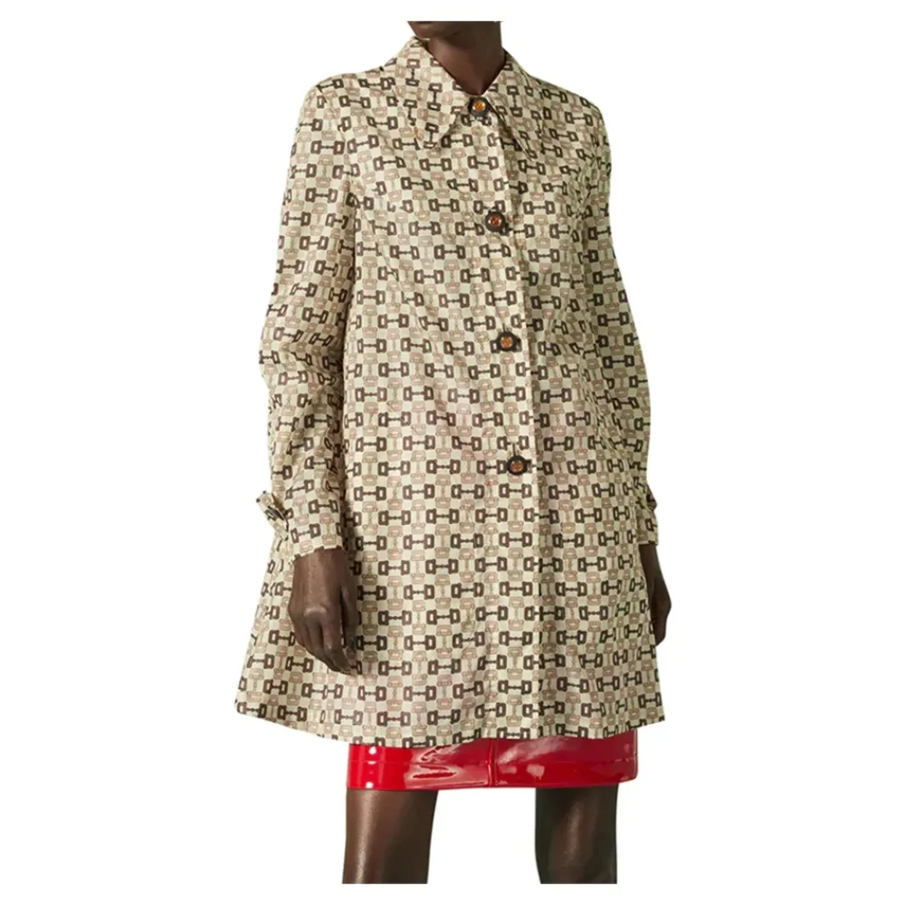 Løft din stil med den luksuriøse Gucci Trench Coat i beige. Lavet af 100% polyamid, denne frakke har lange ærmer, en frontknaplukning og den ikoniske Gucci-logo-signatur over det hele. Perfekt til den moderne kvinde, der værdsætter både mode og komfort. Tilføj dette statement-stykke til din garderobe i dag!