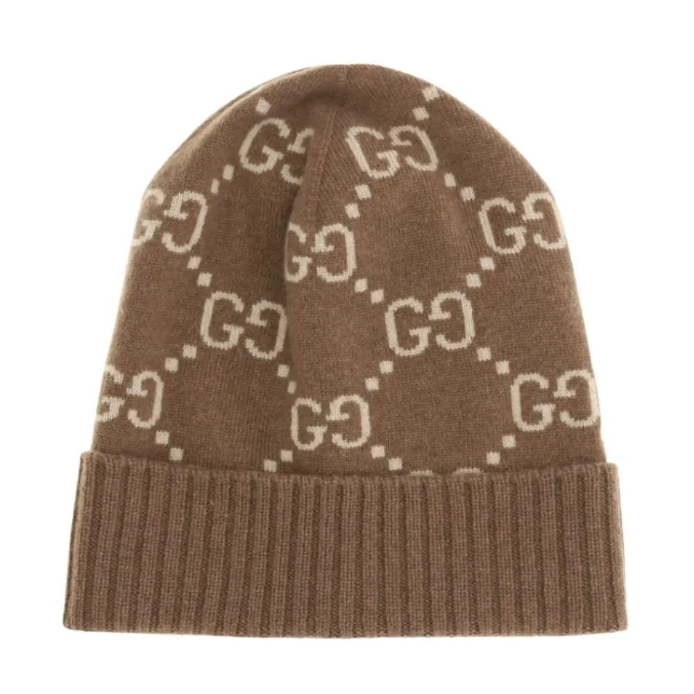 Gucci Huer & Kasketter*GG Cashmere Jacquard Hat Brun