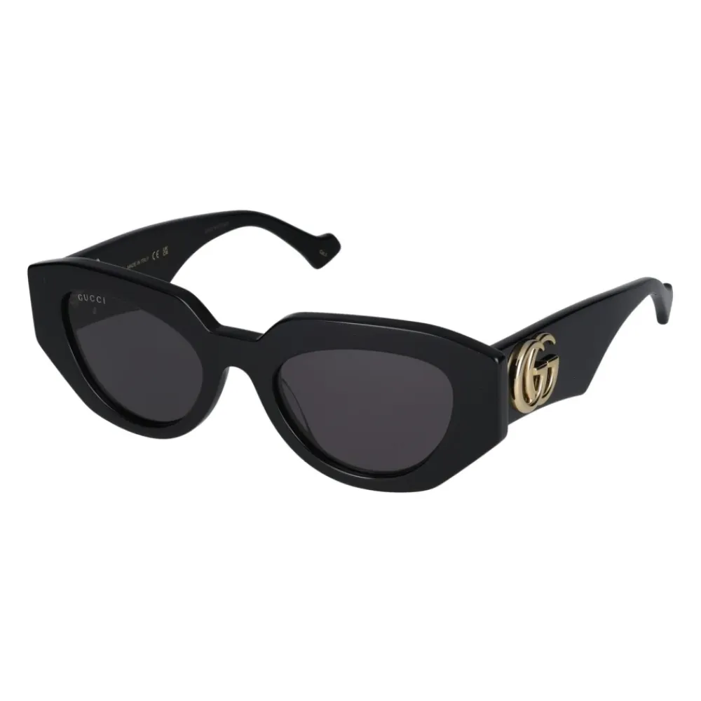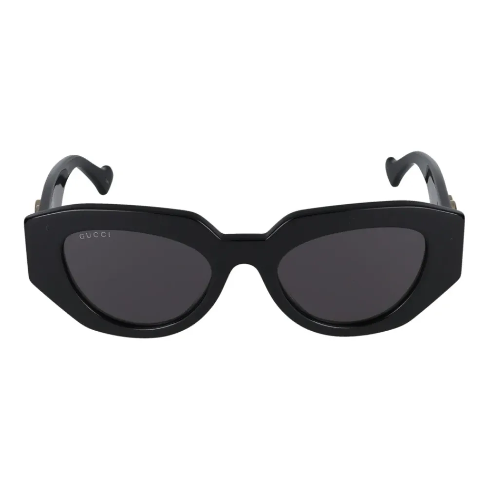 Forhøj din stil med disse sorte Gucci solbriller til kvinder. Med en acetatramme, UV-beskyttelse og et gyldent metal GG-logo på templerne. Linsebredde: 51 mm; Næsebroens længde: 20 mm; Tempellængde: 145 mm.
