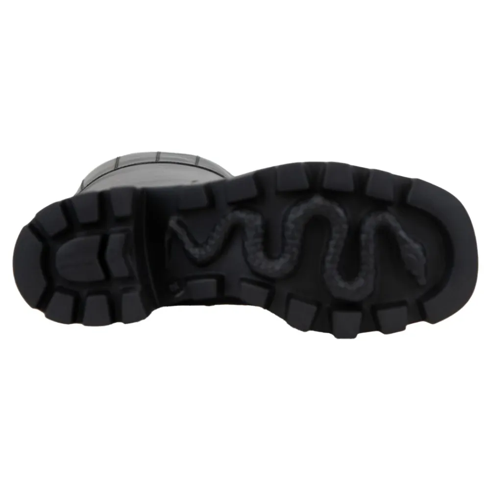 Forhøj din stil med disse høje støvler fra Gucci. Lavet af glat læder med en rund tå og ‘GG’ logo detalje. Gummisålen er holdbar med et unikt slangedetalje. Lavet i Italien. Hælhøjde: 5,5 cm. Kontakt os for indersålens størrelse.