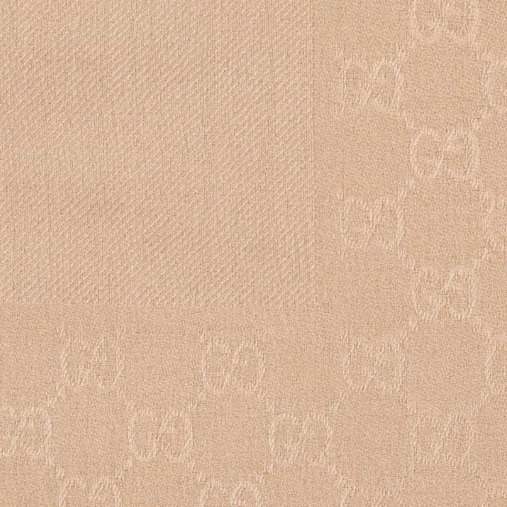 Forkæl dig selv med denne luksuriøse Gucci tørklæde til kvinder i lyserød GG uld og silke jacquard med frynser. Lavet af 70% uld og 30% silke.