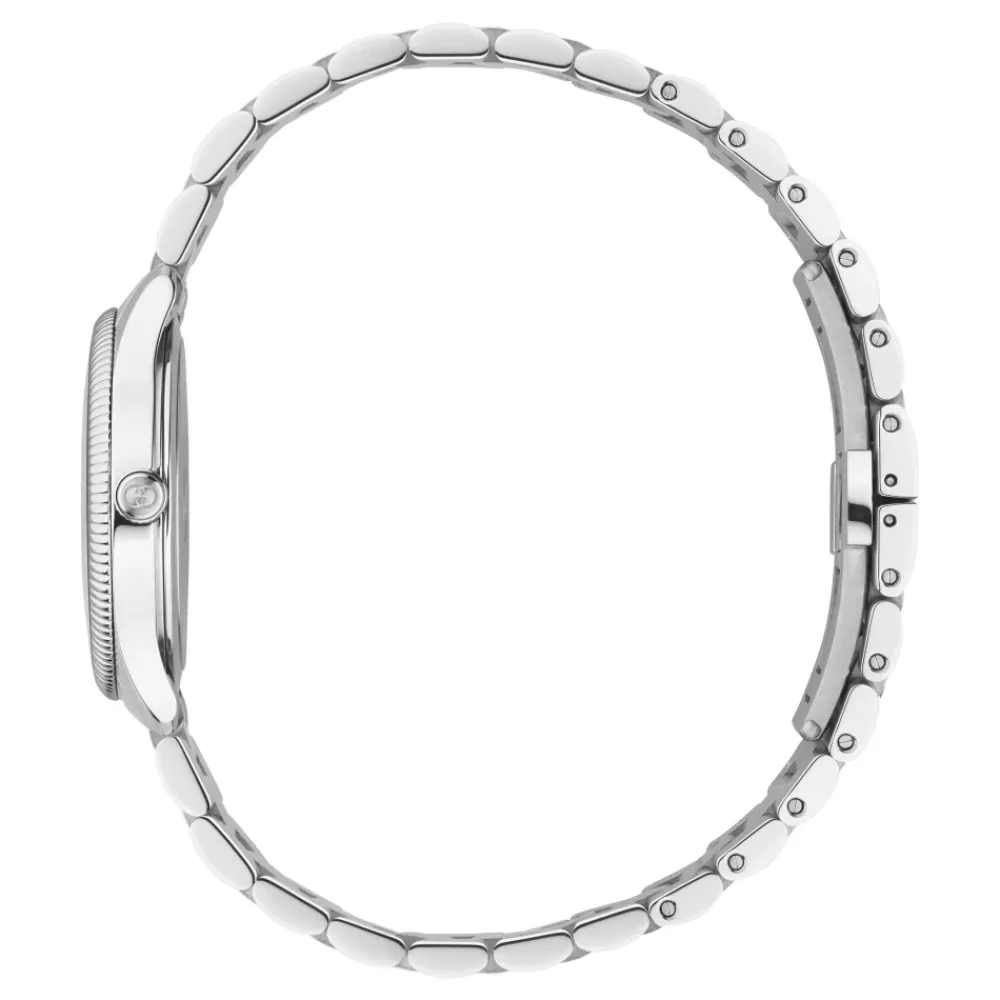 Forhøj din stil med dette Gucci ur til kvinder. Med safirglas og rustfrit stålrem er dette ur vandtæt op til 5 atm (50 meter/164 fod).