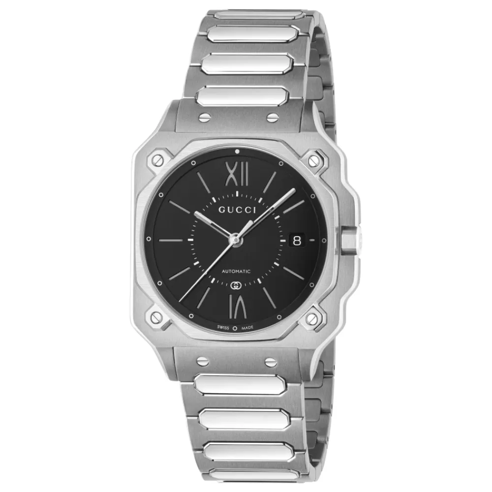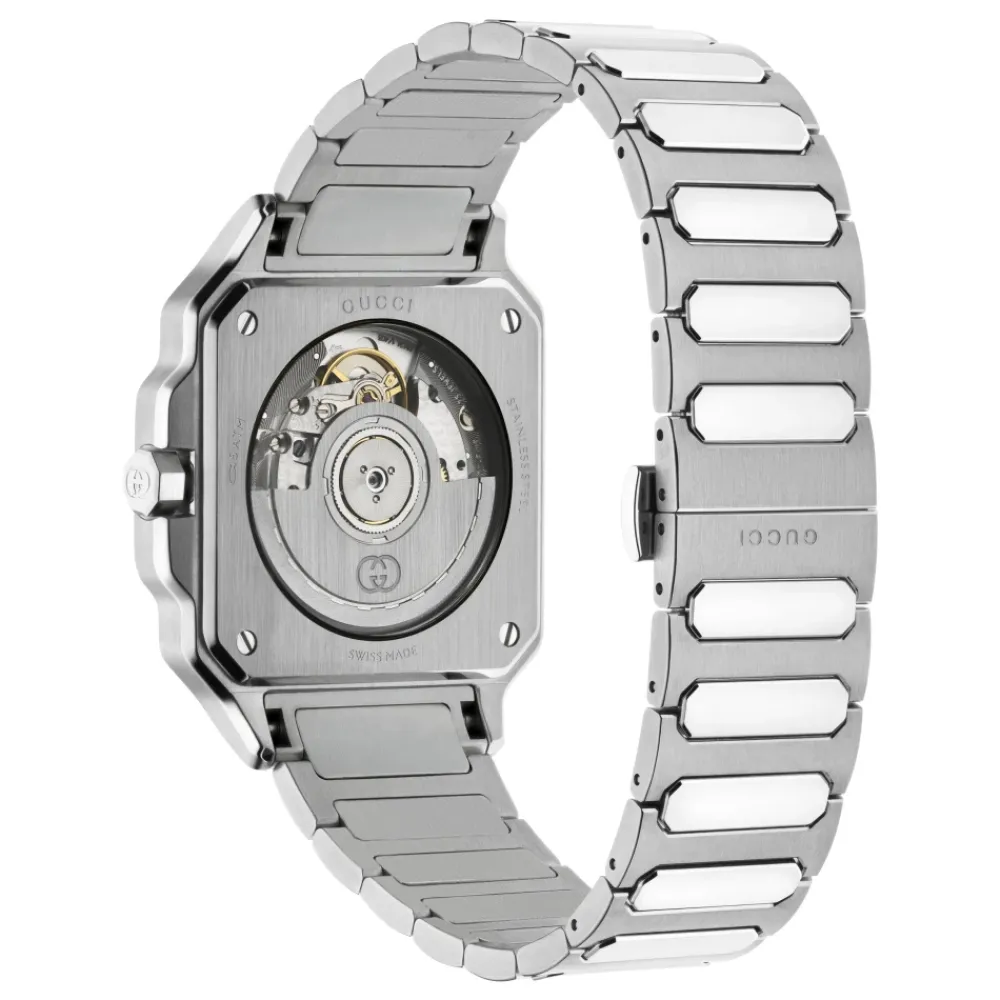 Forkæl dig selv med dette Gucci-ur til kvinder. Med safirglas og rustfrit stålrem er dette tilbehør både elegant og holdbart. Vandafvisende op til 5 ATM (50 meter/164 fod).