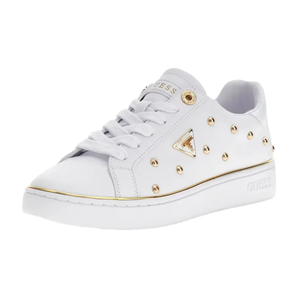 Guess sneakers i imiteret læder med et præget trekantet sidelogo og applikationer med nitter. En statement-klar hverdagssneaker, der passer til både casual og smart-casual outfits. Vigtige egenskaber: Hvid | Bianco | Imiteret læder | Præget trekantet sidelogo | Applikationer med nitter | Overdel i imiteret læder | Sammensætning & pleje: Imiteret læder