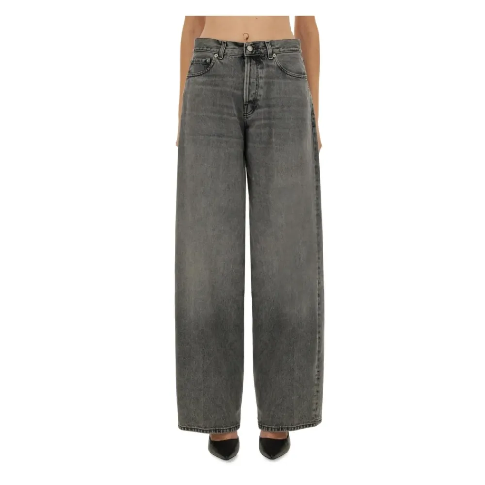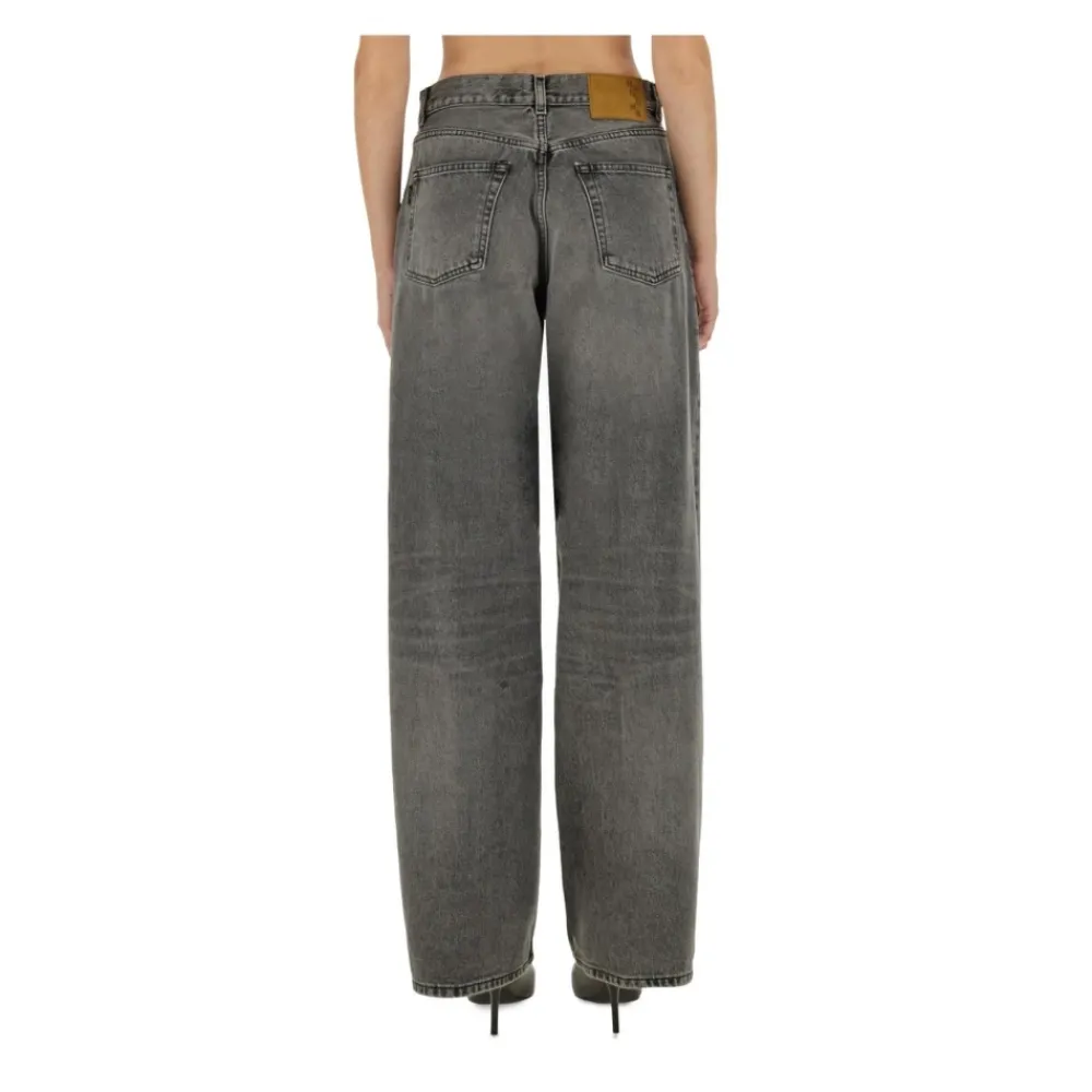 Haikures Wide Leg Distressed Denim Jeans kombinerer en afslappet, moderigtig silhuet med en subtilt slidt, brugt finish. Fremstillet af slidstærk denim for komfortabel hverdagsbrug. Nøgleattributter: Grå | Denim | Wide-leg | Slidt finish | Generøs pasform | Brugt æstetik | Dimensioner og pasform: Afslappet pasform | Generøs wide-leg pasform