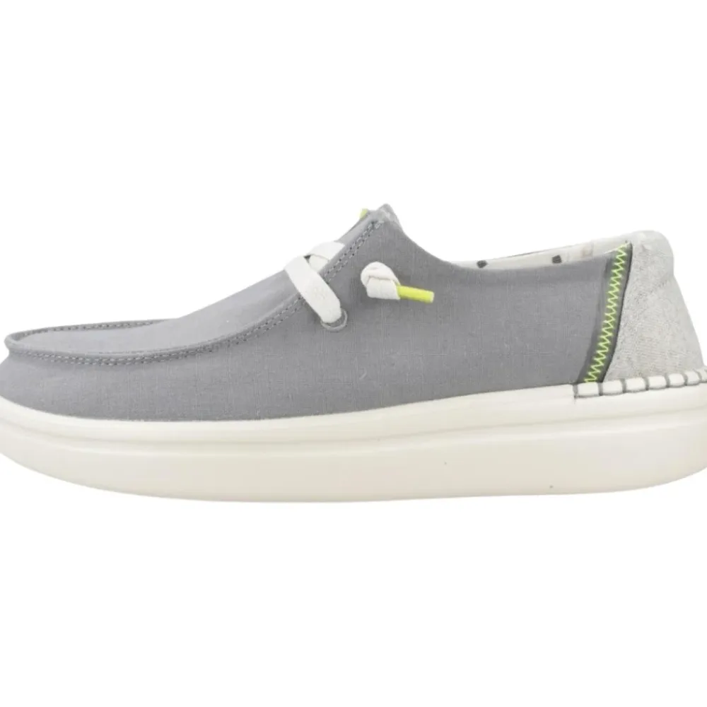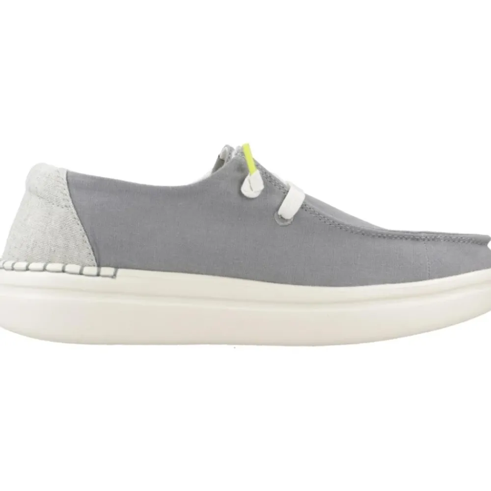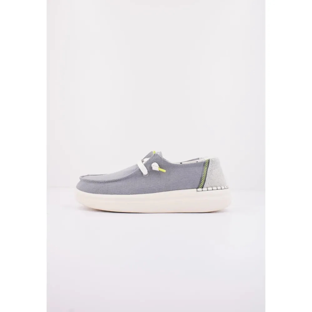 Hey Dude Wendy Rise er en forhøjet loafer i mokkasinstil, der kombinerer en let, åndbar tekstiloverdel med en polstret EVA-skumsål for komfort i hverdagen og nem brug. Nøgleattributter: Grå | Grøn | Tekstil | Let | Åndbar | Skridsikker sål | Nem at vaske | Udtagelig skumindersål | Easy-on system | Klar til rejser | Moc-toe silhuet | Platform (rise) ydersål | Vævede snørebånd | Dimensioner og pasform: Afslappet pasform | Sammensætning og pleje: Tekstiloverdel | EVA-skumsål | Udtagelig skumindersål | Nem at vaske.