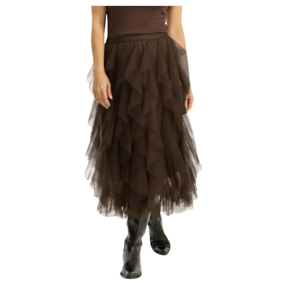 IN FRONT midi nederdel i Brun. En mellemlang nederdel, der passer til hverdagsstyling og lagdelte looks. Vigtigste egenskaber: Brun | Midi længde