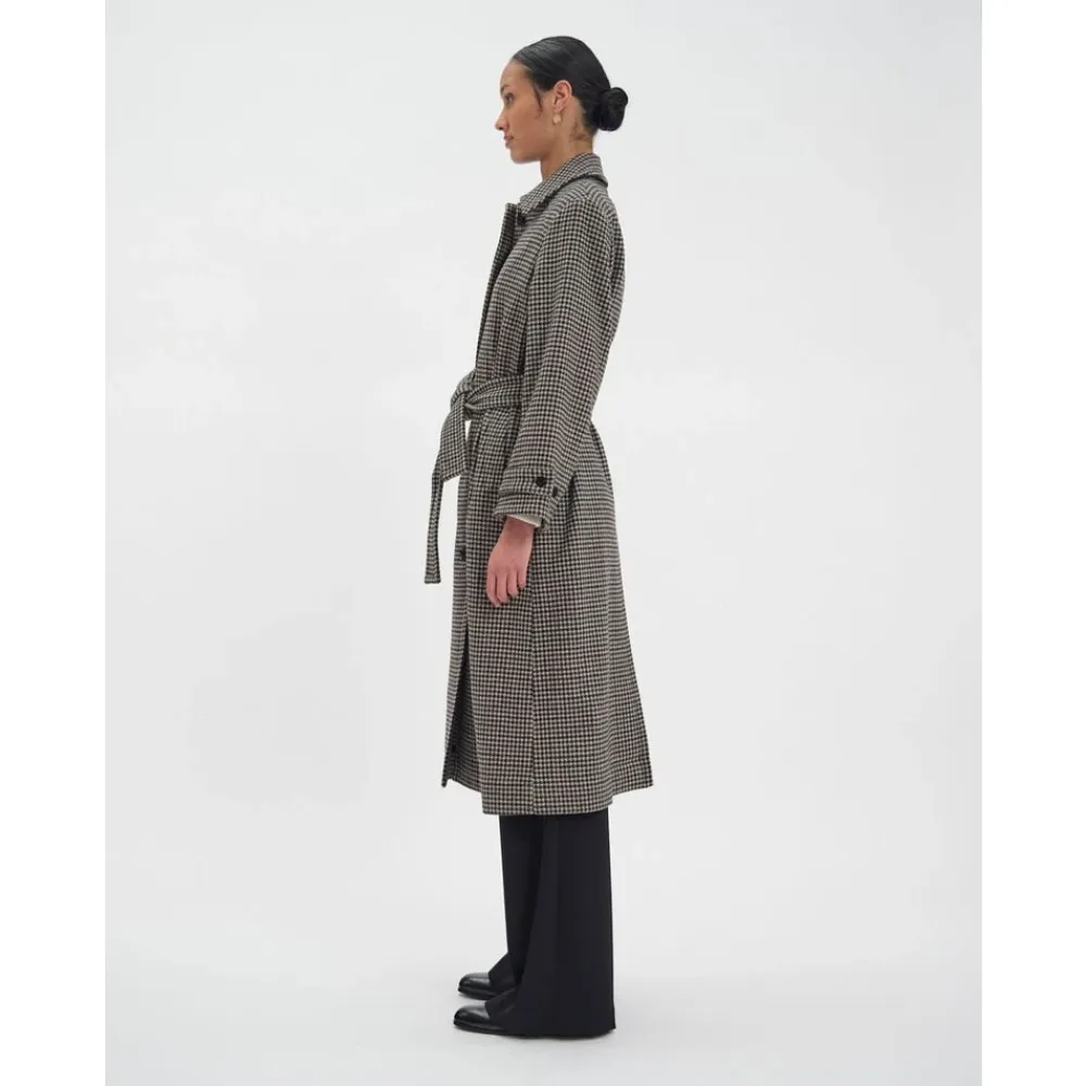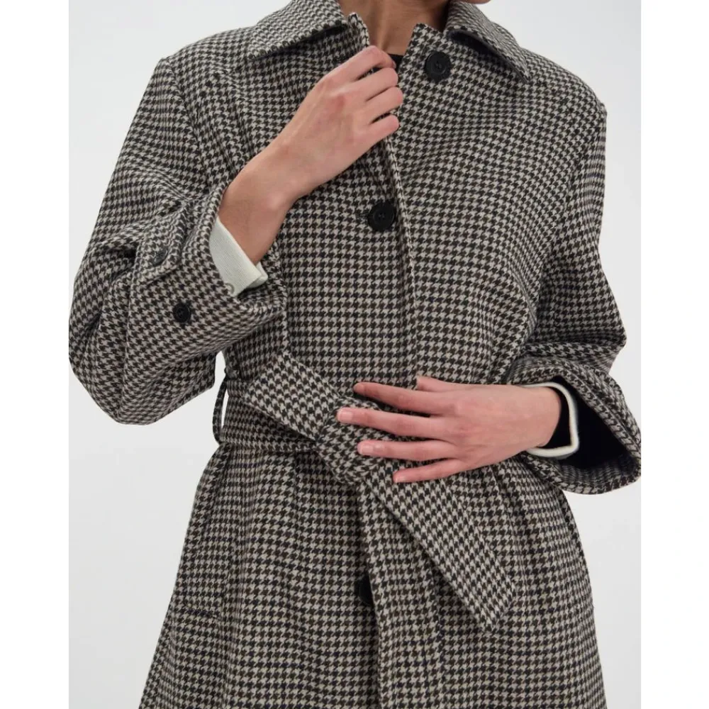 Hold dig varm og stilfuld denne sæson med Esmé frakken fra Ines De La Fressange Paris. Denne hundetand uld-blanding frakke har en bred pasform, knaplukning foran, og et talje-forbedrende bælte for en flatterende silhuet. Lavet med rige, forfine , er denne frakke et must-have for efterår og vinter.