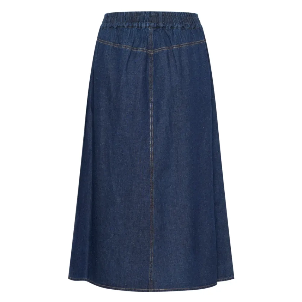 Klassisk denim nederdel fra InWear med en bred elastikkant i taljen. Levering kan forlænges med 2-3 dage, hvis varen ikke er i vores butik lige nu.