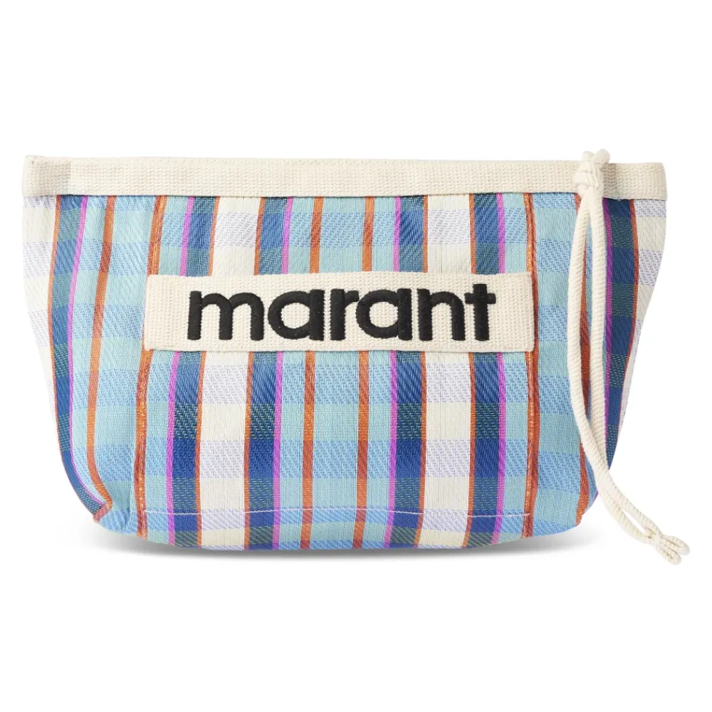 Isabel Marant Powden Clutch Bag er en kompakt stribet nylon clutch, der fremhæver et kontrasterende broderet logo. Den er designet til at blive båret i hånden med en lynlåslukning for sikker opbevaring af dine væsentlige ting. Vigtige egenskaber: Flerfarvet | Turkis | Kridt | Nylon | Lynlåslukning | Håndholdt | Uforet | Stribet ternet mønster | Broderet logo | Patch lomme | Sammensætning & pleje: 100% nylon