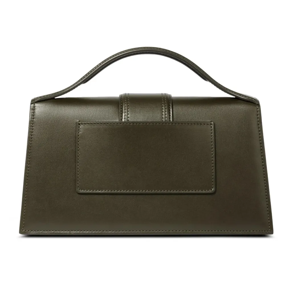 Jacquemus’ The Large Bambino Bag er en struktureret crossbody-taske i glat læder med et polstret tophåndtag og en aftagelig, justerbar rem. Dens kompakte silhuet og magnetiske flap gør den til en praktisk hverdags skuldertaske eller crossbody-taske. Nøgleattributter: Mørk khaki | Læder | Polstret tophåndtag | Aftagelig og justerbar lang læderrem | Flap med magnetisk lukning | Ekstern kortlomme/baglomme | Fuldt foret | Graveret hummerlukning | Struktureret silhuet | Topstitchede detaljer | Farvede kanter | Sølvfarvet metallogo og hardware | Dimensioner & pasform: Længde: 23,5 cm | Højde: 13 cm | Sammensætning & pleje: 100% Koskindslæder | Undgå direkte og langvarig udsættelse for lys og kontakt med kosmetik, vand eller varme. Opbevar i støvposen på et tørt sted.