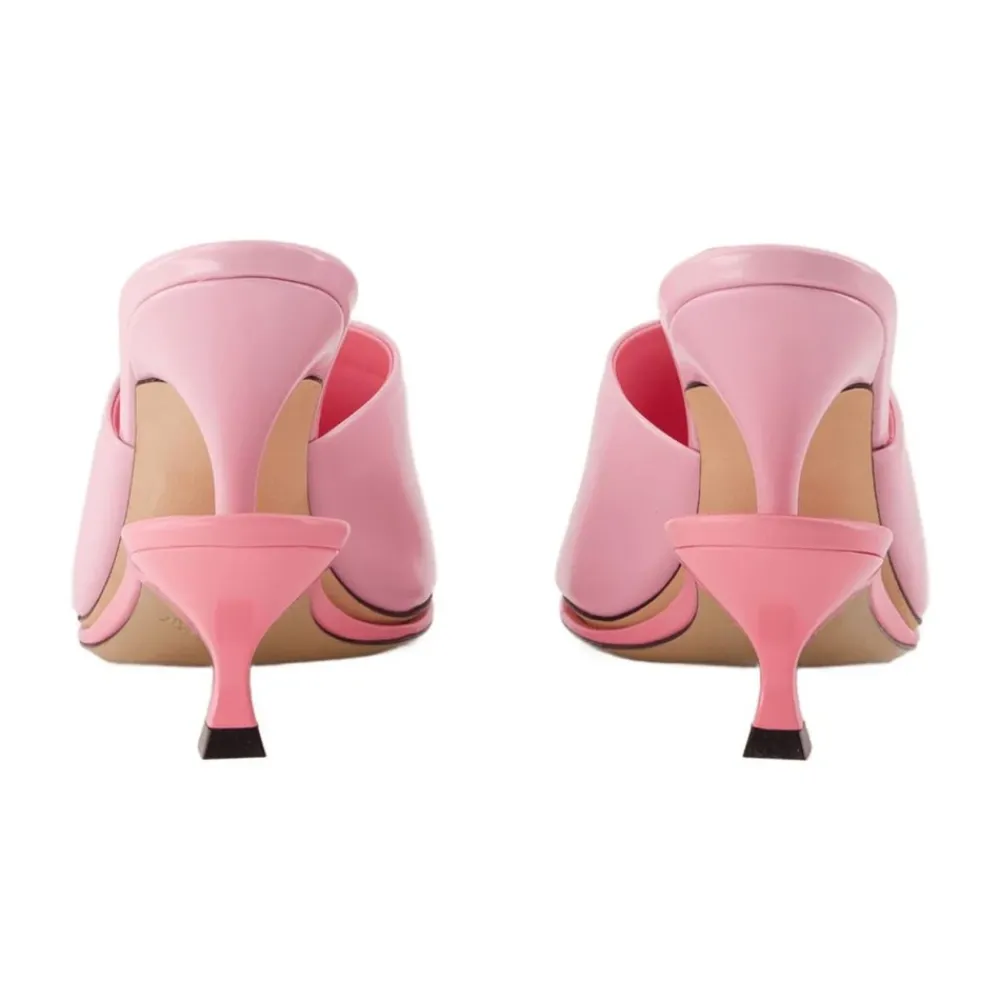 Jacquemus Double Mules tilbyder et moderne statement med en skulpturel dobbelt hæl og en elegant silhuet med åben tå. Designet til raffinerede outfits kombinerer de en dristig form med polstret komfort. Nøgleattributter: Pink | Kalveskind | Lædersål | Slip-on | Polstret indersål | Præget logo på indersålen | Skulpturel dobbelt hæl | Åben tå | Rund tå | To-farvet læderfinish | Dimensioner & pasform: Hælhøjde: 11 cm | Vrist: 10 cm | Normal i størrelsen | Sammensætning & pleje: Overdel: 100% kalveskind | Foring: 100% lammeskind | Sål: 100% kalveskind | Pletrenses med en blød klud. Professionel læderrens anbefales. Fjern beskyttelsesfilmen fra lædersålen før brug.