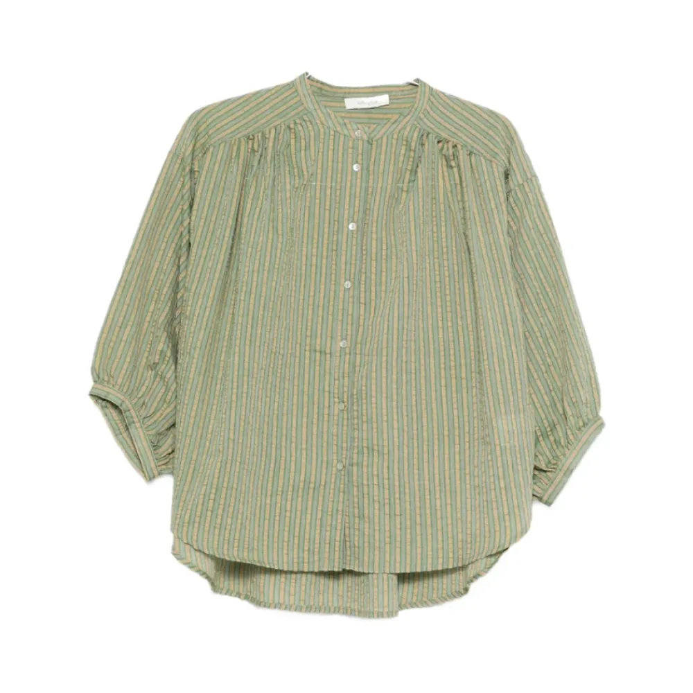 JC Sophie LUCCA Shirt er en oversized, stribet bomuldsskjorte defineret af en mandarin krave og tekstureret finish. Den fungerer godt som en afslappet hverdagstop eller som et lag-på-lag stykke til afslappede outfits. Nøgleattributter: Grøn | Neutrale | Bomuld | Åndbart stof | Knaplukning foran | Mandarin krave | 3/4 pufærmer | Rynker ved skulderen | Stribet print | Tekstureret finish | Oversized silhuet | Dimensioner & pasform: Løs pasform | Passer normalt i størrelsen | Sammensætning & pleje: 100% bomuld | Maskinvask ved 30°C. Må ikke bleges. Må ikke tørretumbles. Stryges ved lav temperatur. Renseri.