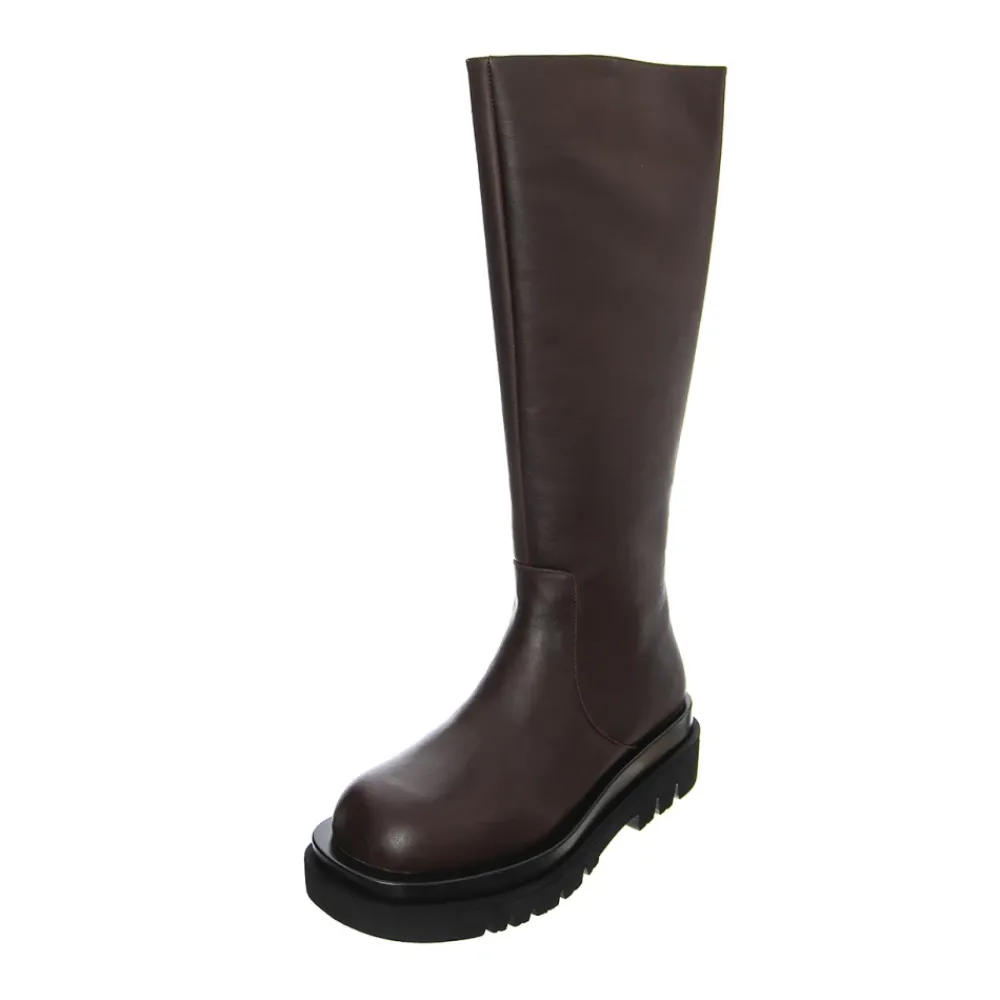 Løft din stil med disse Jeffrey Campbell Høje Støvler, perfekte til efterår og vinter. Disse støvler er fremstillet i brunt læder og har en medium profil og en slidstærk gummisål. Produkt detaljer: Brun | Læder | Medium profil | Ensfarvet | Brand logo indvendigt |