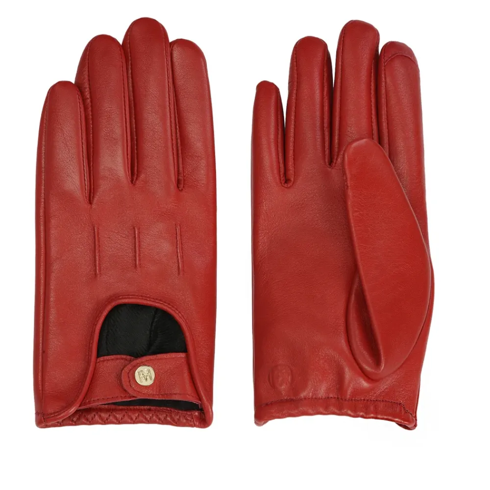 Thecargloves er lavet af topkvalitets naturlæder, som bliver mere forfinet, når det bruges, og tilpasser sig hånden. Deres fordel udover deres praktiske anvendelse er det ekstremt attraktive design med syninger og udskæringer, der får hænderne til at se slanke og attraktive ud. Spidserne af pegefingeren og tommelfingeren er færdiggjort med et materiale, der gør det muligt at bruge touchskærme. Modellen adskiller sig ved topklasse håndværk og æstetisk design, der matcher både sporty og elegante stilarter. Handskerne har en trykknap for nem påtagning. Den røde farve symboliserer energi og lidenskab og tilføjer en dristig accent til enhver styling. Den passer perfekt til både neutrale farver og mere udtryksfulde kombinationer og gør det til et iøjnefaldende stykke tøj.