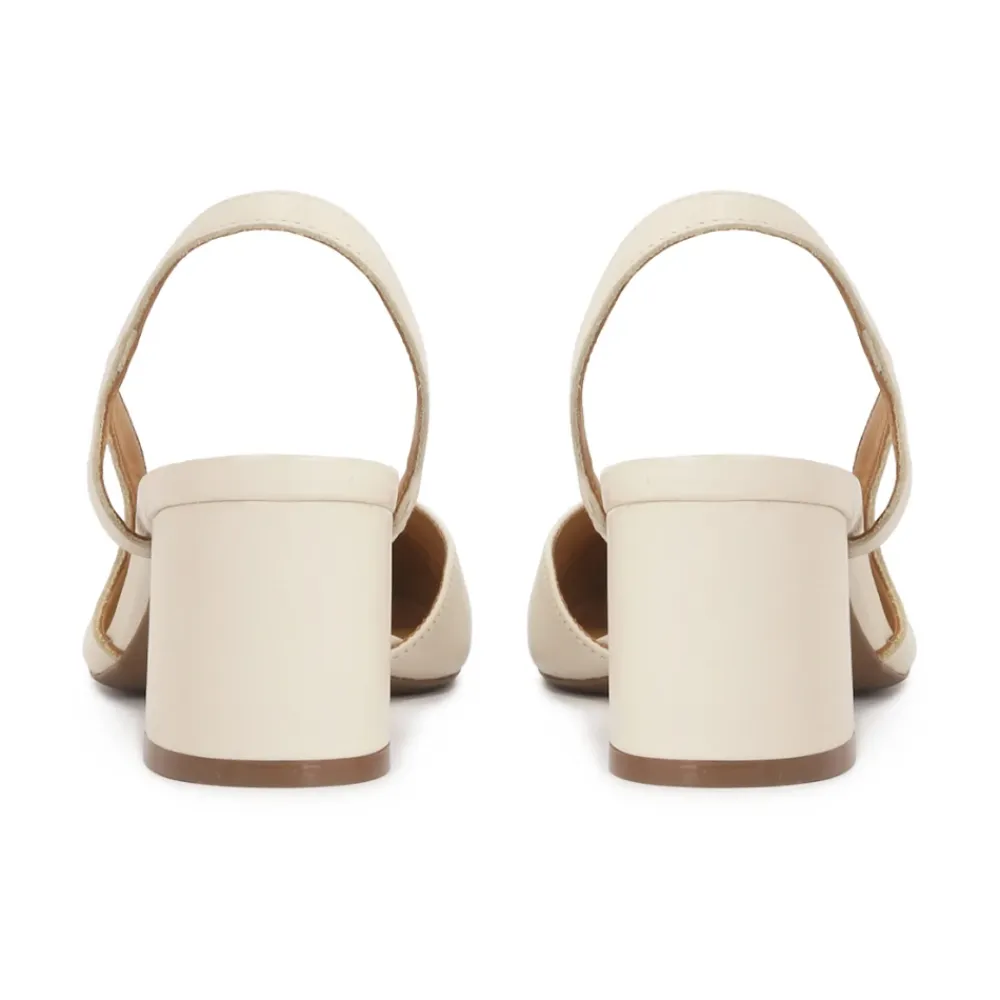 Cremepumps lavet af høj kvalitet naturlæder er et elegant valg for kvinder, der værdsætter klassikere og komfort. Modellen er kendetegnet ved en udskæring øverst med en åben hæl, hvilket giver skoene et subtilt, feminint udseende og gør dem ideelle til varmere dage. Den blokerede tå tilføjer et chic touch og giver komfort samtidig med at den understreger deres tidløse karakter. Skoene er sat på en stabil stiletto hæl, som subtilt forlænger silhuetten, samtidig med at den sikrer komfort selv under langvarig brug. Den delikate cremefarve gør disse pumps til et alsidigt tilbehør, ideelt til både formel styling og mere afslappede ensembler. Dette er en harmonisk kombination af elegance, klassikere og funktionalitet. Brugskomforten garanteres af foret lavet af topkvalitets semianilin gedeskind.