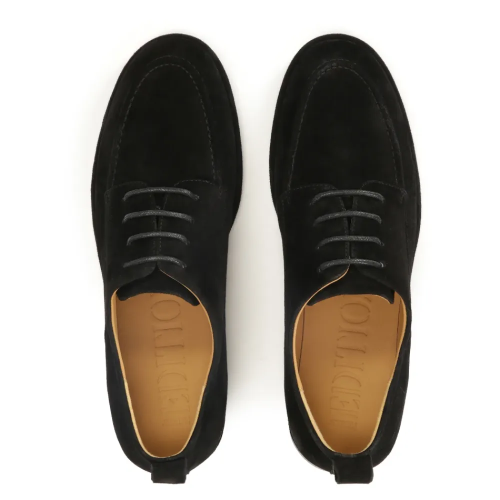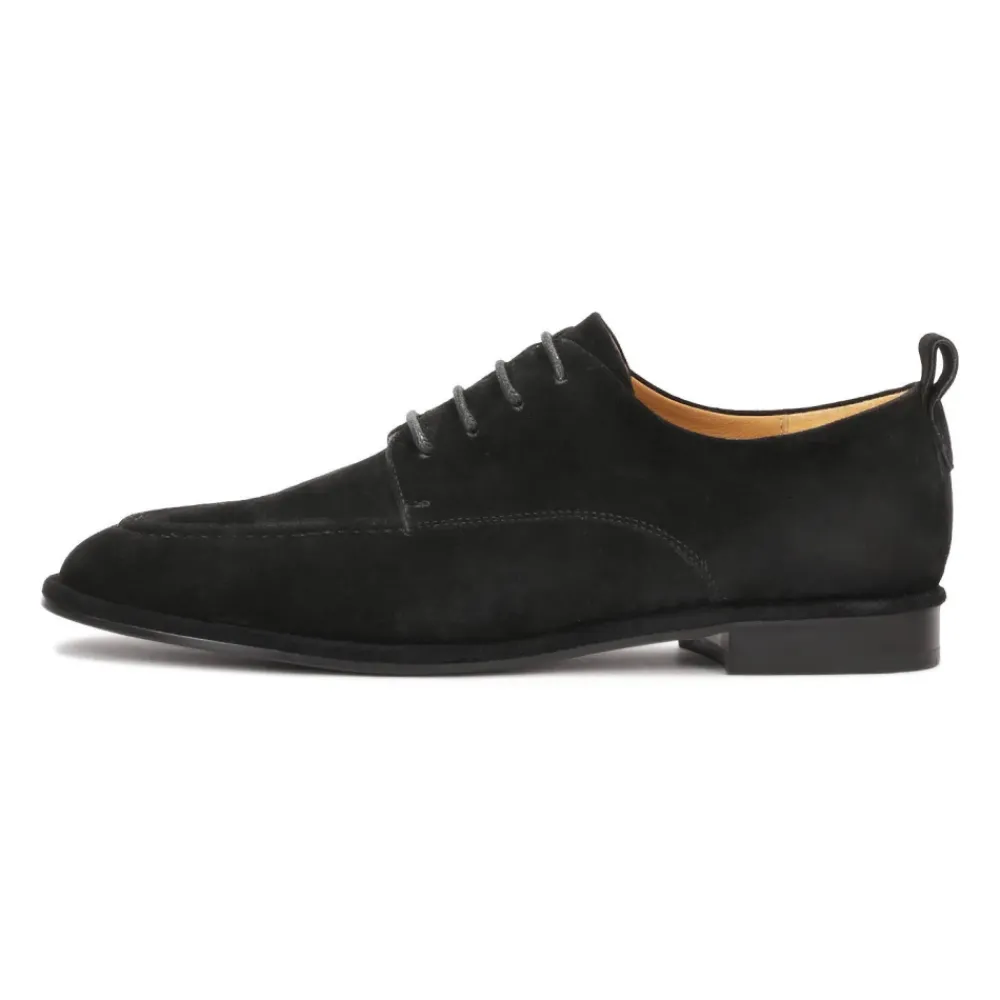 Kazar snøresko i ruskind kombinerer en blød ruskindsoverdel med et klassisk snøredesign for en tidløs og alsidig silhuet. En flad sål og semianilin fåreskindsforing giver komfort til hverdagsbrug, både til urbane og raffinerede looks. Nøgleattributter: Sort | Ruskind | Fugtabsorberende fåreskindsforing | Snørelukning | Flad sål for komfort i hverdagen | Dekorative syninger på tåen | Snøredesign, der kombinerer klassiske og moderne linjer | Tidløs, alsidig silhuet | Sammensætning & pleje: Overdel: Ruskind | Foring: Semianilin fåreskind