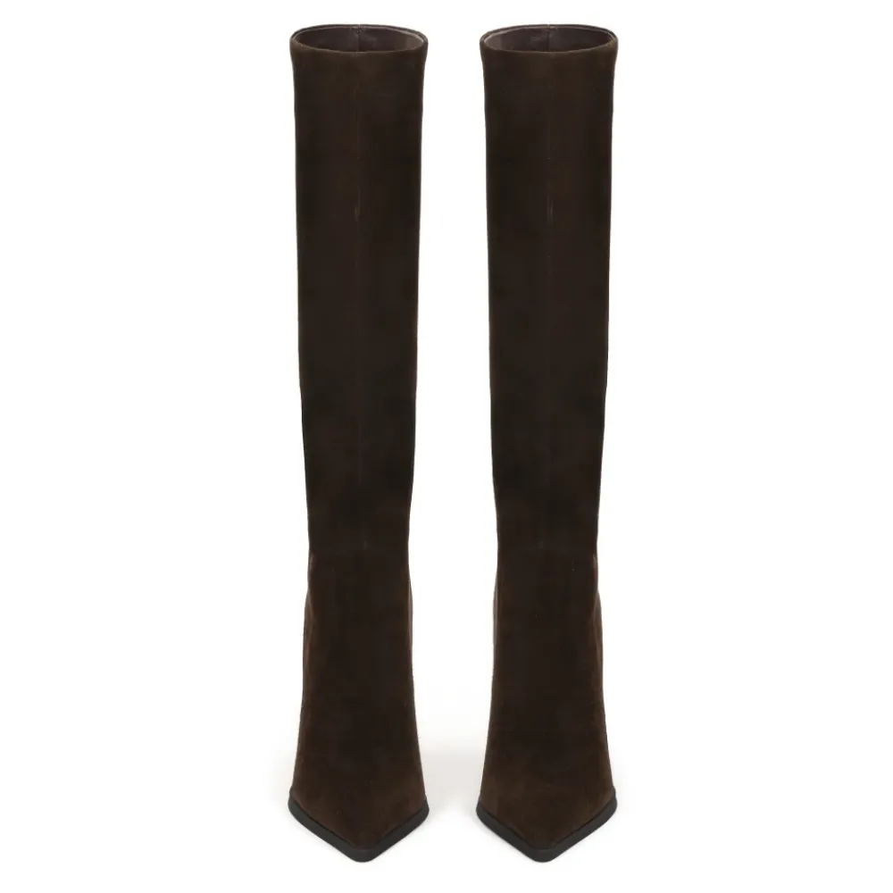 Kazar Heeled Boots kombinerer en minimalistisk ankelhøjde med en høj stilet for en forlænget, elegant silhuet. Den bløde ruskindsoverdel og det fåreskindforede interiør kombinerer raffineret tekstur med behagelig varme til køligere dage. Vigtige egenskaber: Brun | Ruskind | Varmt for | Slip-on overdel | Tætsiddende skaft | Spids tå | Slank stilet hæl | Minimalistisk ankelhøjde | Fløjlsagtig ruskind finish | Dimensioner og pasform: Tætsiddende | Sammensætning og pleje: Ruskind | Fåreskind | Stofpelsfor