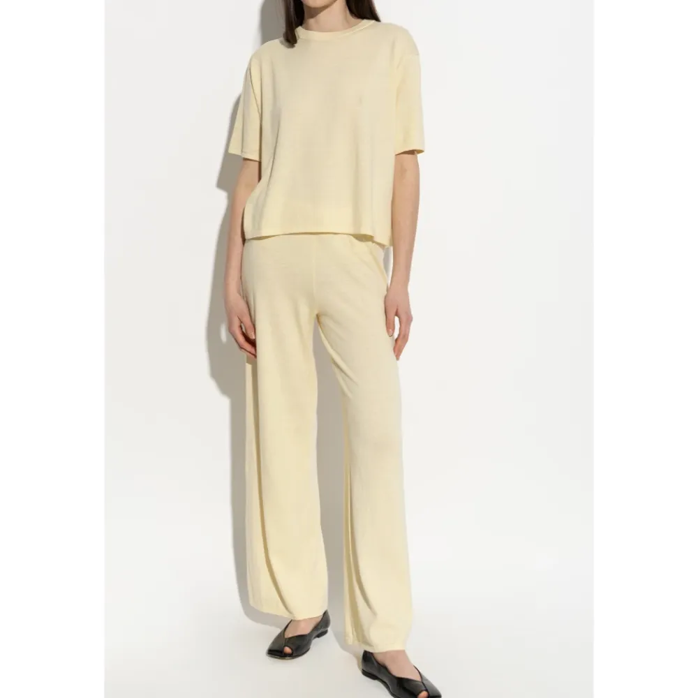 Rubie Top fra Lisa Yang er en minimalistisk striktrøje, der er skabt til et afslappet og raffineret look. Dens bløde bomulds-cashmere blanding og rene silhuet gør den velegnet til et løftet hverdagslook. Vigtige egenskaber: Gul | Bomulds-cashmere | Blød håndfølelse | Holdbar | Rund hals med ribkant | Brede, afslappede ærmer | Løs, let oversized silhuet | Ingen logoer eller tryk | Dimensioner og pasform: Modelhøjde: 177 cm | Bryst: 83 cm | Talje: 61 cm | Hofter: 89 cm | Modellen er iført størrelse: 1 | Løs, let oversized pasform | Sammensætning og pleje: 70% bomuld | 30% cashmere | Rens eller håndvask kold. Brug ikke blegemiddel eller skyllemiddel. Lægges fladt til tørre; vrid ikke. Brug kun strygejern ved lav varme.