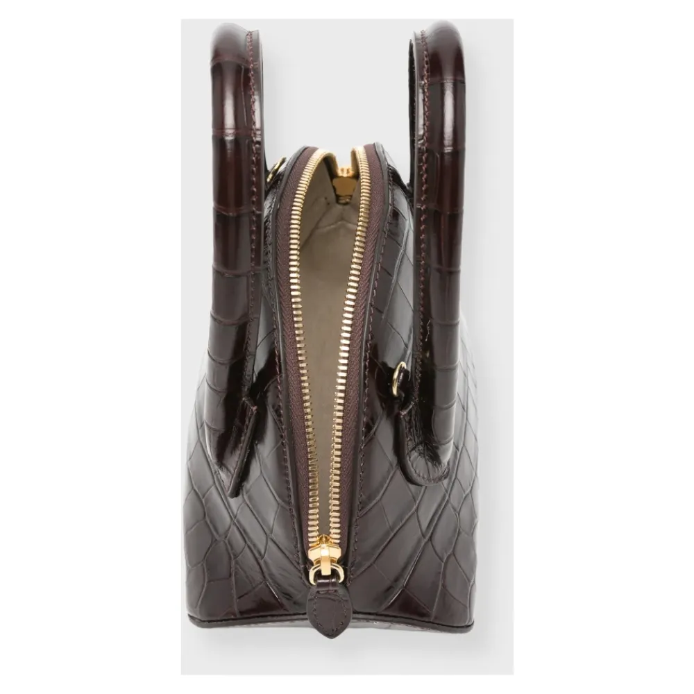 Little Liffners Mini Dome Bag er en kompakt mini lædertaske designet som en aftenledsager. Den kombinerer en kuppelform med en aftagelig rem, der gør det nemt at bære den crossbody eller over skulderen. Vigtige egenskaber: Brun | Mörkbrun | Læder | Aftagelig skulderrem | Designet til crossbody og skulderbrug | Kuppelform | Kompakt mini-form | Mål og pasform: Dybde 10 cm | Højde 15 cm | Bredde 20 cm | One size | Sammensætning og pleje: Læder