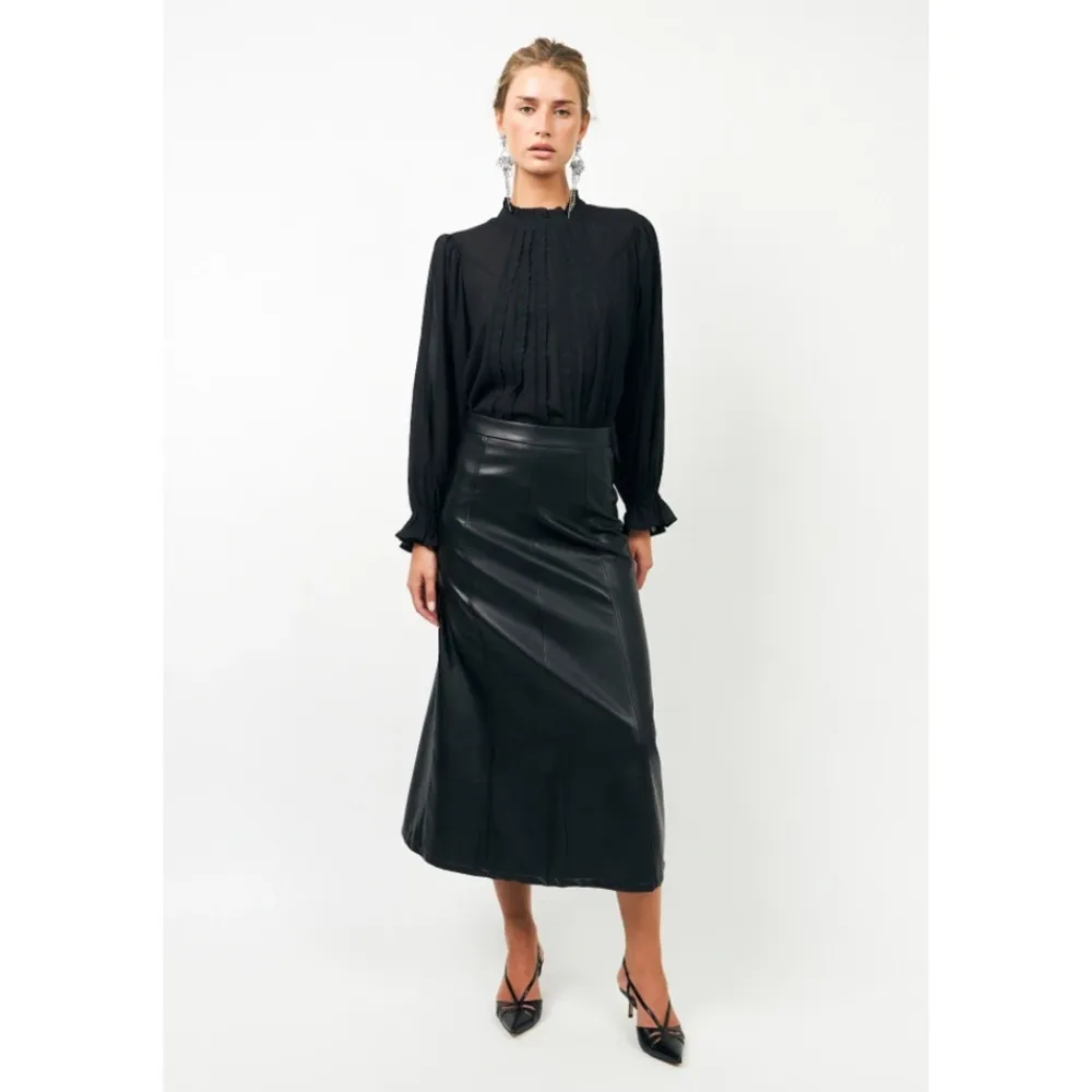 Lollys Laundry midi nederdel designet med en alsidig, mellemlang silhuet, der er egnet til styling fra dag til aften. Vigtigste egenskaber: Sort