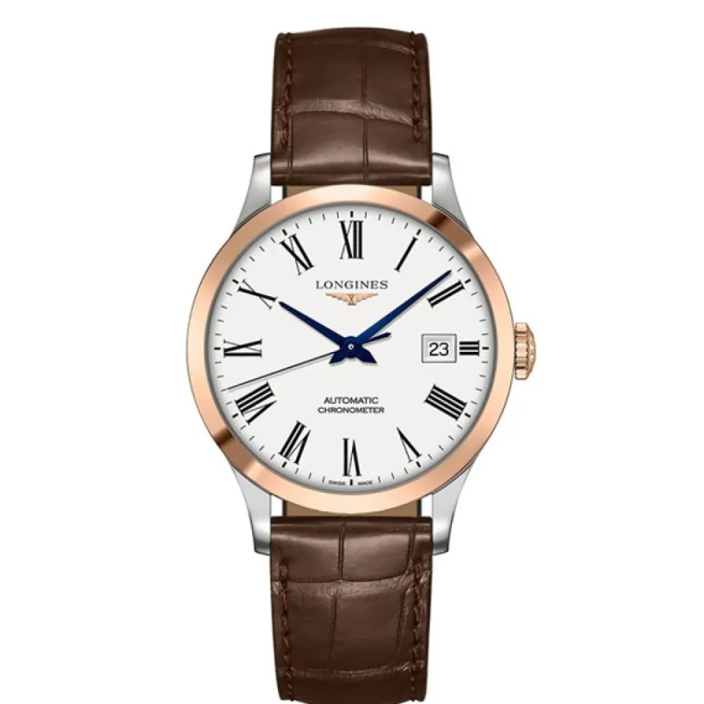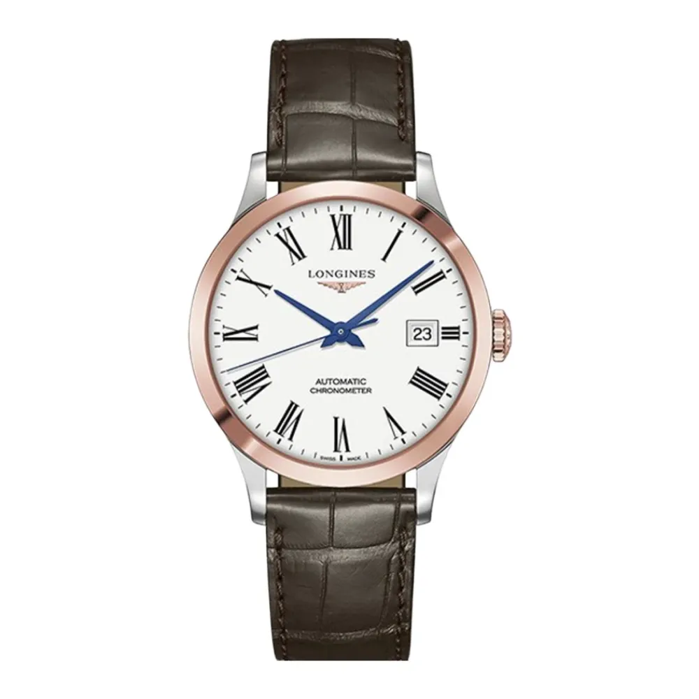Præsenterer LONGINES L28205112 – record 38,5 mm automatisk ur til kvinder. Dette elegante ur har en hvid urskive og et rustfrit stålkabinet med en diameter på 38,5 mm. Med en vandtæthed på 3 Bar er det velegnet til håndvask. Uret er beskyttet af et safirglas og leveres med et brun læderrem. Spændet sikrer en sikker pasform. Hæv din stil med dette sofistikerede LONGINES ur.
