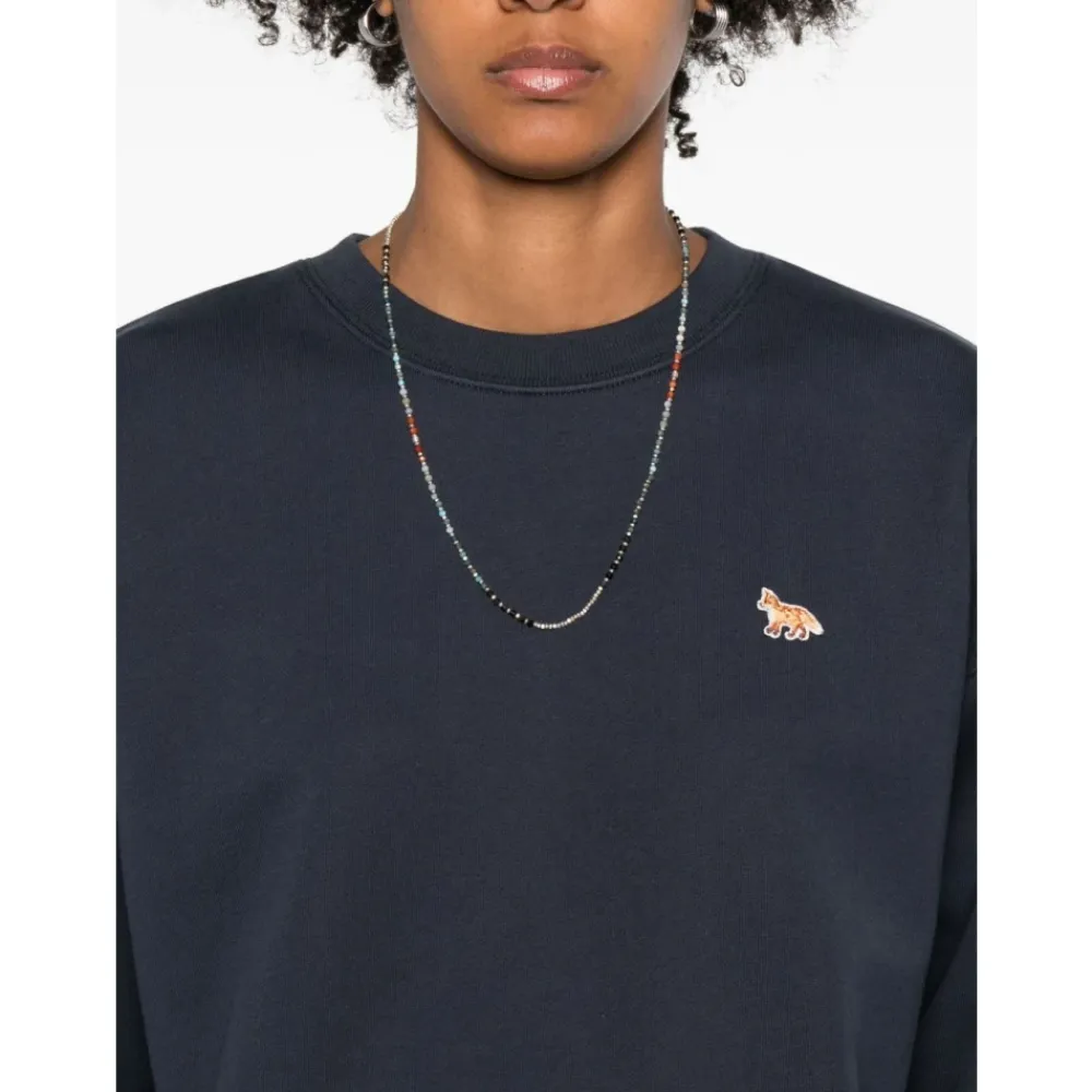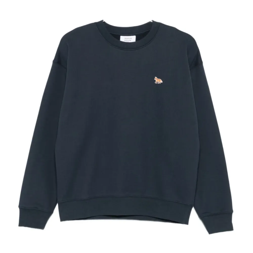 Maison Kitsuné Sweatshirts*Ræv Detalje Crew Neck Sweater Blå