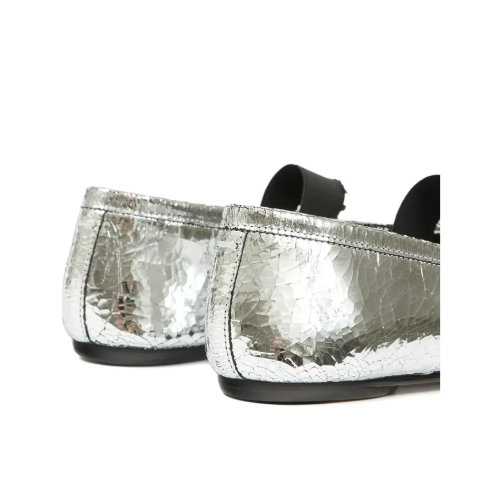 Forkæl dig selv med Maison Margielas sølv elastiske stropper og signatur Tabi tå slip-on ballerinaer. Fremstillet af 100% kalveskind, disse flade sko er et must-have for den moderne kvinde.